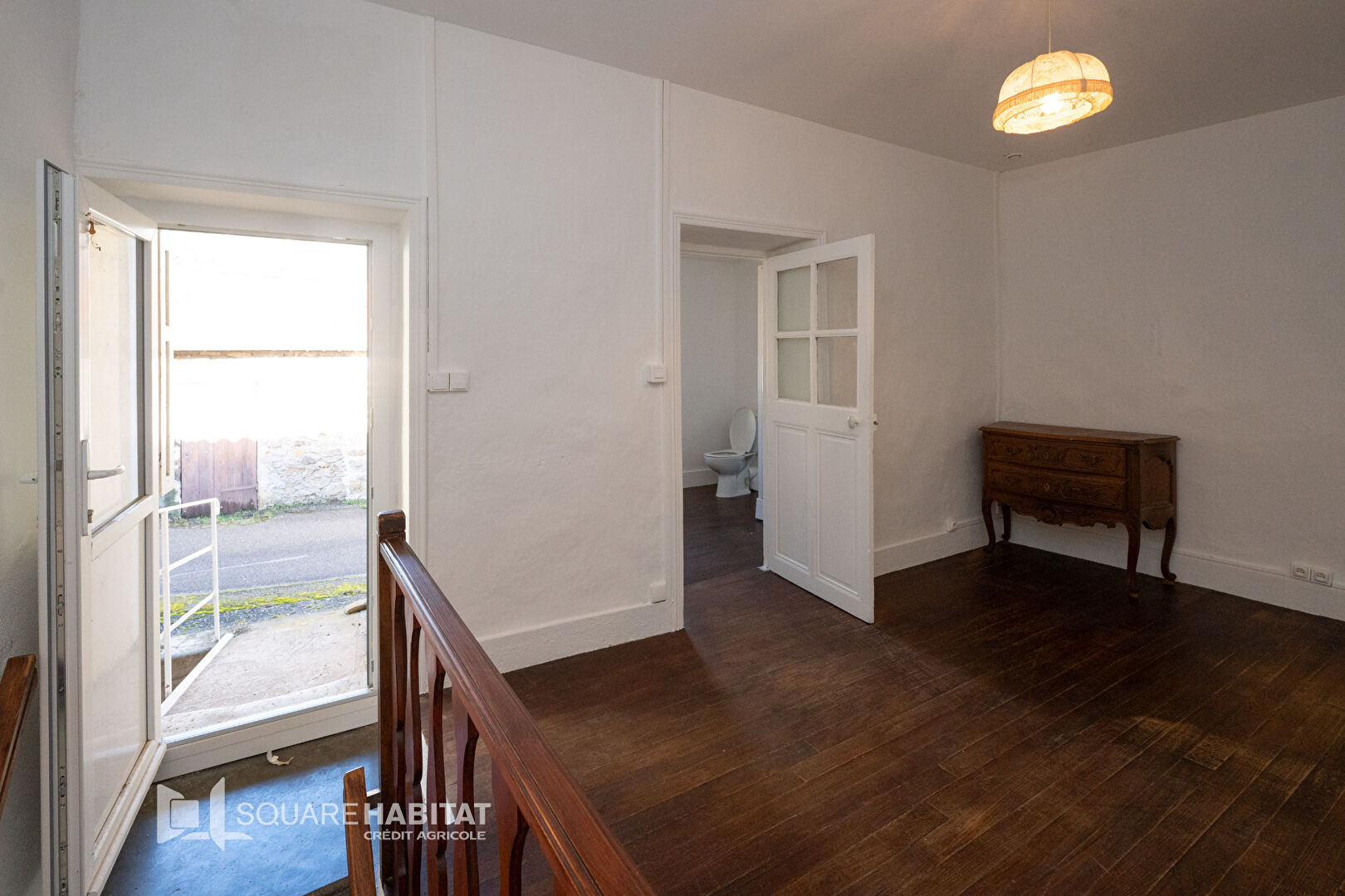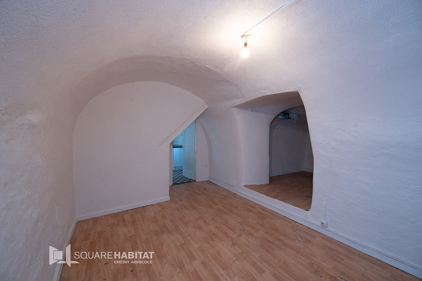L'espace intérieur se compose d'un salon-séjour de 21m² exposé Sud, d'une cuisine aménagée et équipée avec la présence d'un poêle à granulés, ainsi que d'un cellier avec 2 caves (une avec un WC et dont l'accès se fait par l'extérieur et la seconde dont l'accès se fait par le cellier).