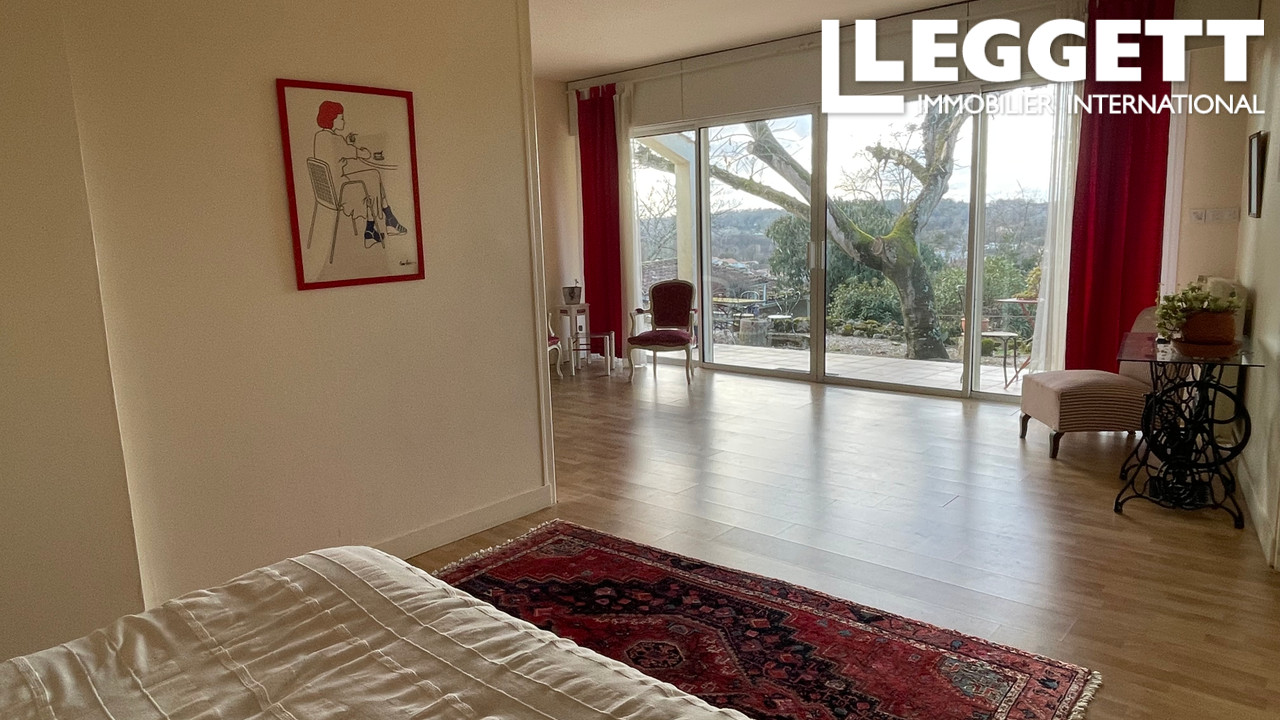 La maison d'origine, datant du XVIIIe siècle, a été agrandie dans les années 1990 par une extension équipée de grandes B-vitrées afin de profiter au maximum des vues magnifiques sur la Dordogne et le village. Ces baies vitrées donnent accès à la terrasse ombragée, exposée sud-ouest, et à la piscine et son parc qui se trouvent en contrebas accessible par un joli ancien escalier en pierre! L'ensemble est digne à une ambiance romantique typique du Sud de la France!