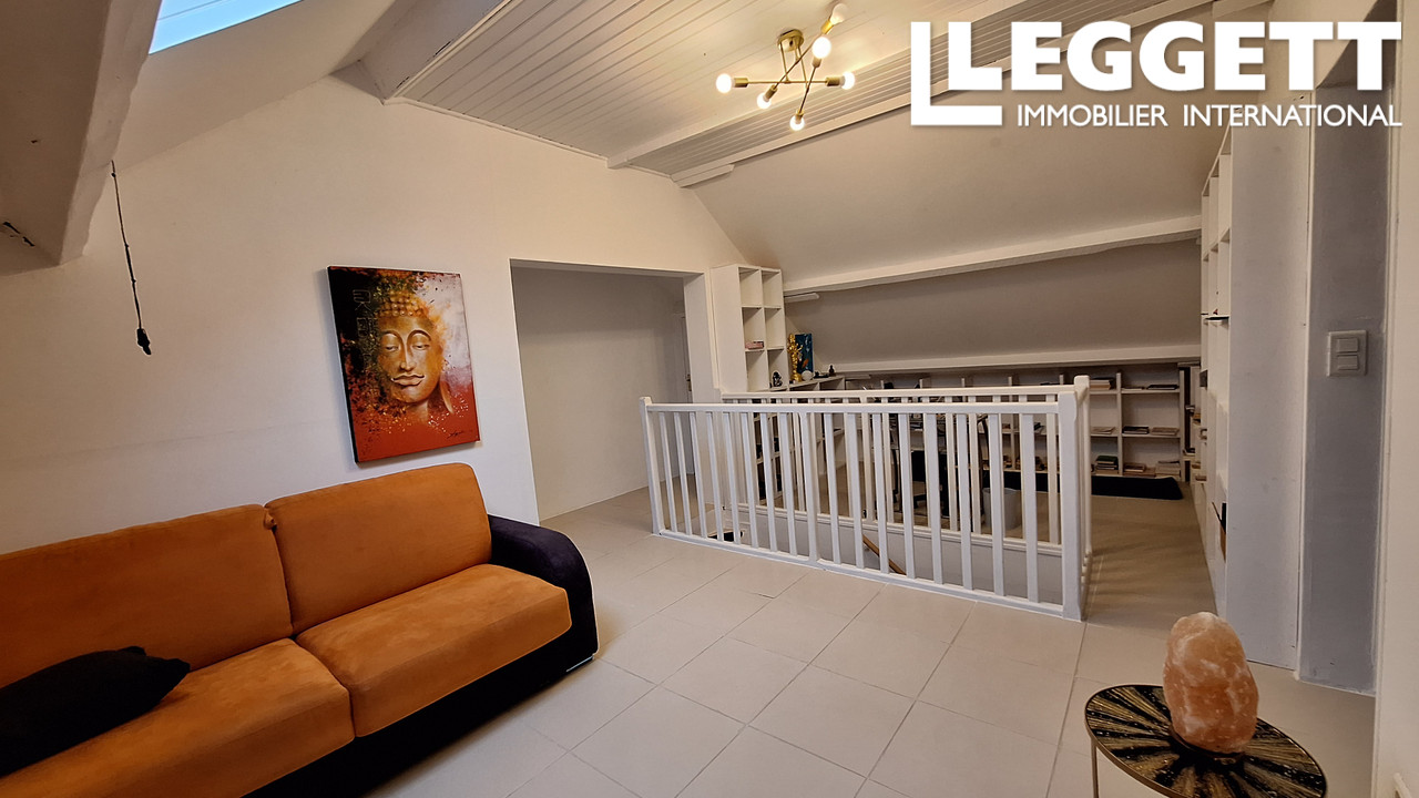 À l'étage, facilement exploitable de façon indépendante : deux salons, deux chambres avec rangements et WC, permettant la création d'un logement à louer.