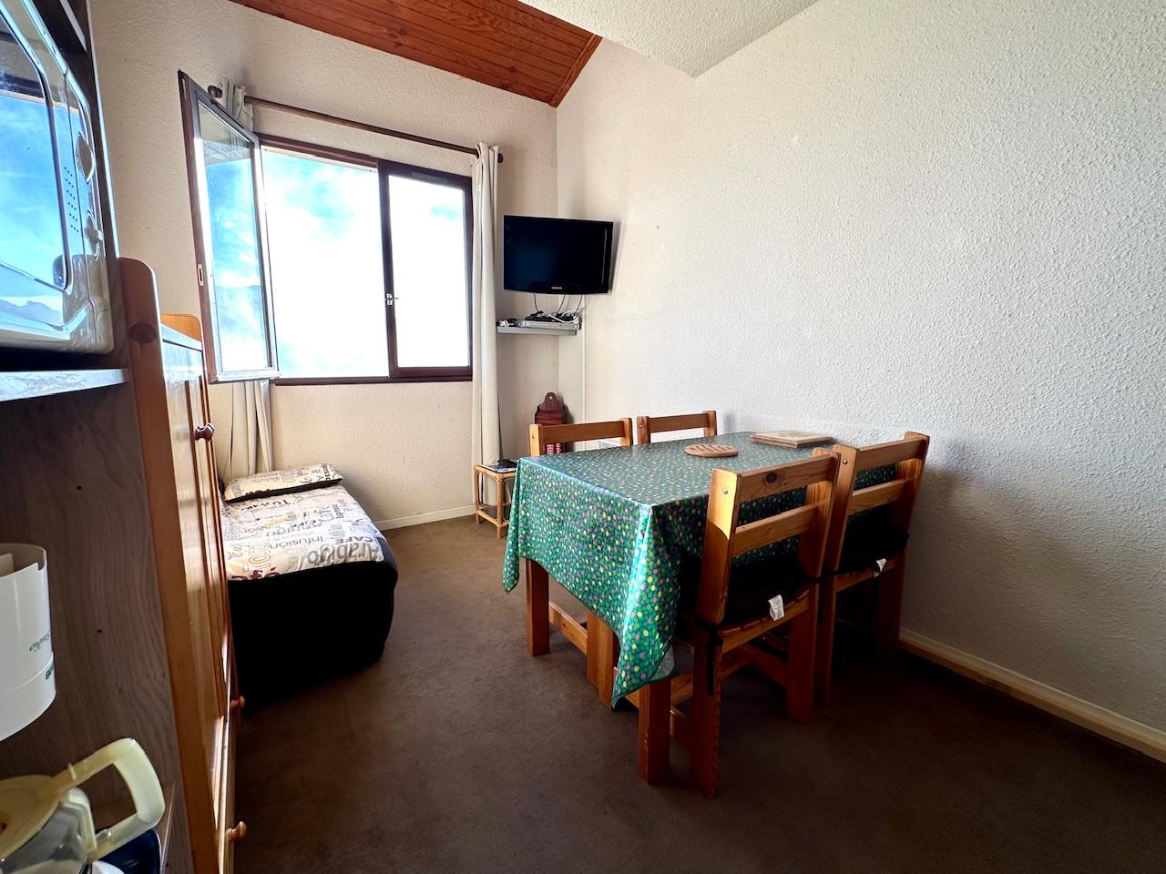 AX 3 DOMAINES, Appartement T2 duplex de 33.6 m² Carrez, 35 m² hab. avec superbe vue (+10 m² de rangement sous-combles) dans une copropriété de 71 lots principaux, comprenant entrée avec placards, séjour avec kitchenette et salle d'eau-wc. A l'étage une chambre et un coin nuit lits superposés donnant accès à une pièce sous les combles, aménageable servant de stockage. Vendu meublé avec casier à skis, vue imprenable, exposition Est, pas de balcon et rafraîchissement à prévoir. Charges courantes/an : 901 €. Honoraires à la charge du vendeur. Montant estimé des dépenses annuelles d'énergie pour un usage standard : entre 750 et 1 070 euros. Prix moyens des énergies indexés en 2022.