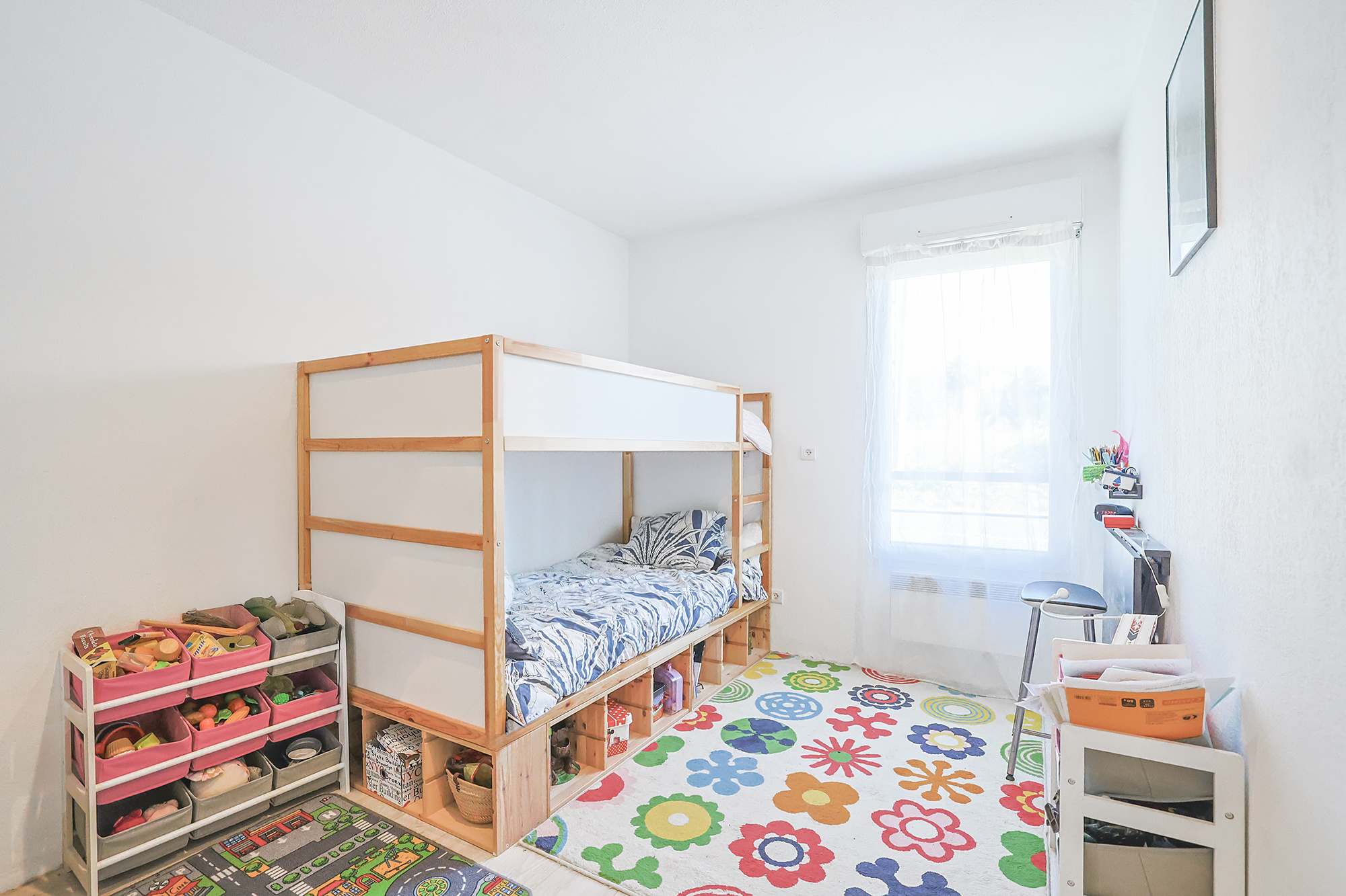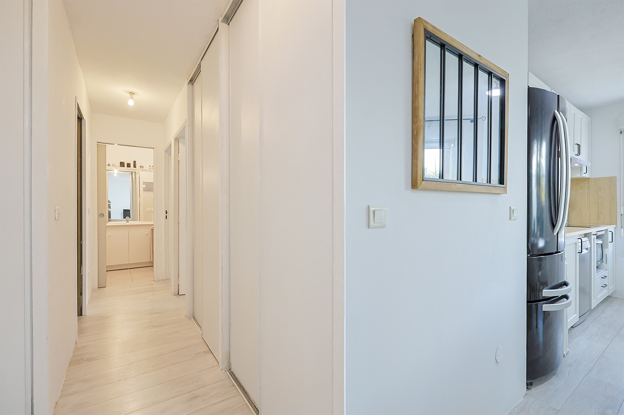 - de deux chambres confortables de tailles identiques (11m2), avec placards intégrés,