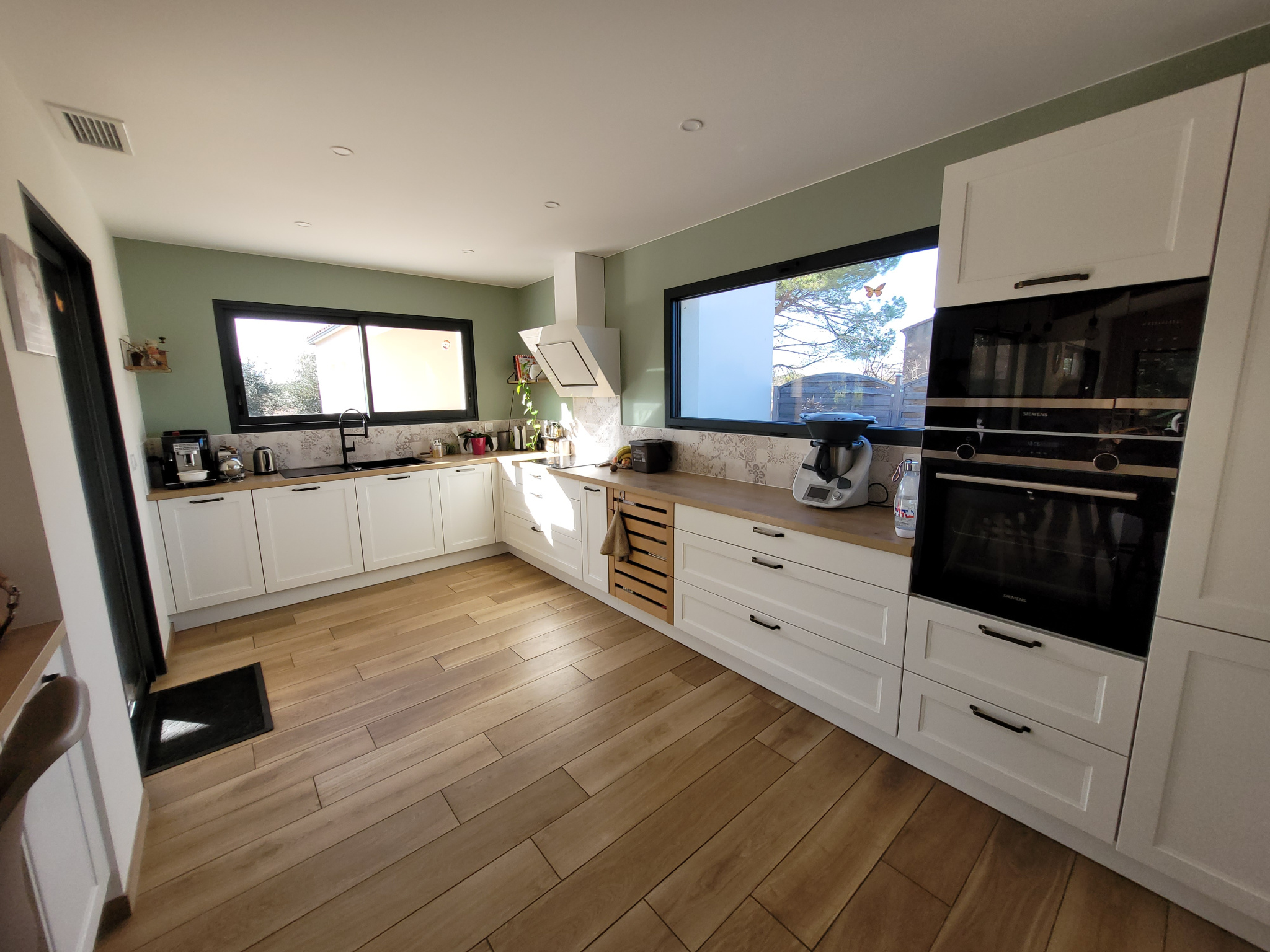 Secteur Clape Villa d'exception moderne T6 / T7, construite en 2022 sur 1300 m2 de terrain, elle offre un espace de vie lumineux et paisible ouvrant sur une jolie terrasse profonde et agréable à proximité de la Clape, de la mer et 15 km de Narbonne. Cette villa devrait plaire à une famille nombreuse. La surface habitable de 206 m2 comporte un espace salon - salle à manger de 51m2, une cuisine avec cellier - buanderie attenant, un bureau de 20 m2 et 5 chambres dont une suite parentale. Elle dispose également d'un garage de 30 m2 d'un pool-house et de panneaux photovoltaïques. Le bureau peut être aménagée en salle de sport ou en atelier peinture, bibliothèque. Elle est conforme aux dernières normes de construction et d'isolation label BBC garantissant une forte isolation thermique. La tranquillité des occupants est assurée par le double vitrage. À l'extérieur, le bien vous offre 2 terrasses et une pergola de 20 m2 environ avec vue dominante. Le terrain clos de 1365m2. La construction de ce logement remonte à 2022. Il est tout neuf. La propriété s'accompagne d'un garage privatif pour protéger votre véhicule. Prix de vente minimum : 780 000 EUR DPE A pour toute visite contactez nous AGENCE AULIS 04.68.33.31.44.