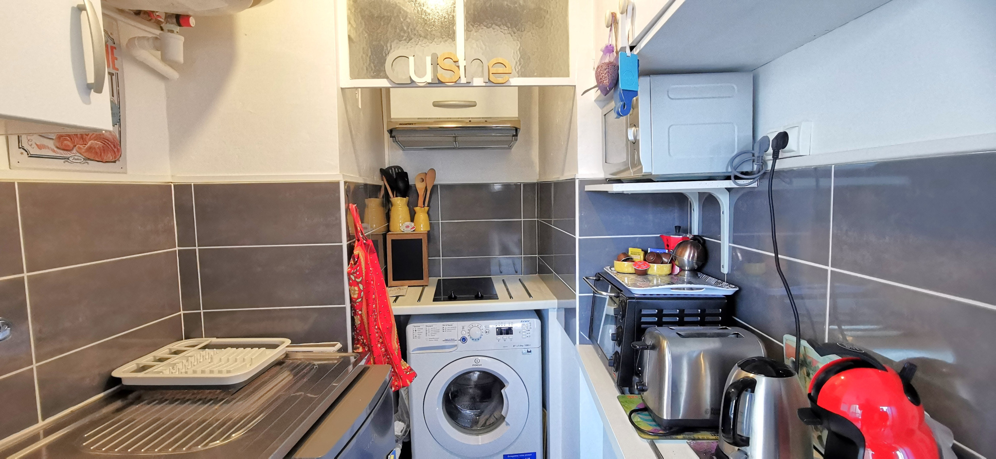 Cassis - Beau studio situé au 4ème et dernier étage d'un petit immeuble du centre ville. Il se compose d'une pièce principale ouvrant sur terrasse de 11 m2 avec belle vue dégagée sur le village, une cuisine ouverte équipée, une salle d'eau et un wc séparé. Copropriété totalisant 37 lots d'habitation. Charges courantes 50 euros mensuelles.