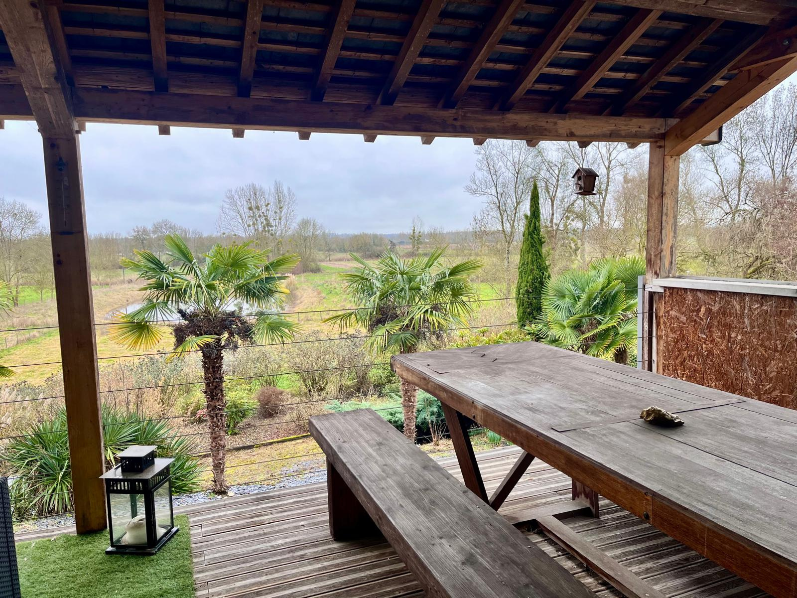 Terrasse sur jardin arboré avec lac. Carport stationnement 2 voitures.
