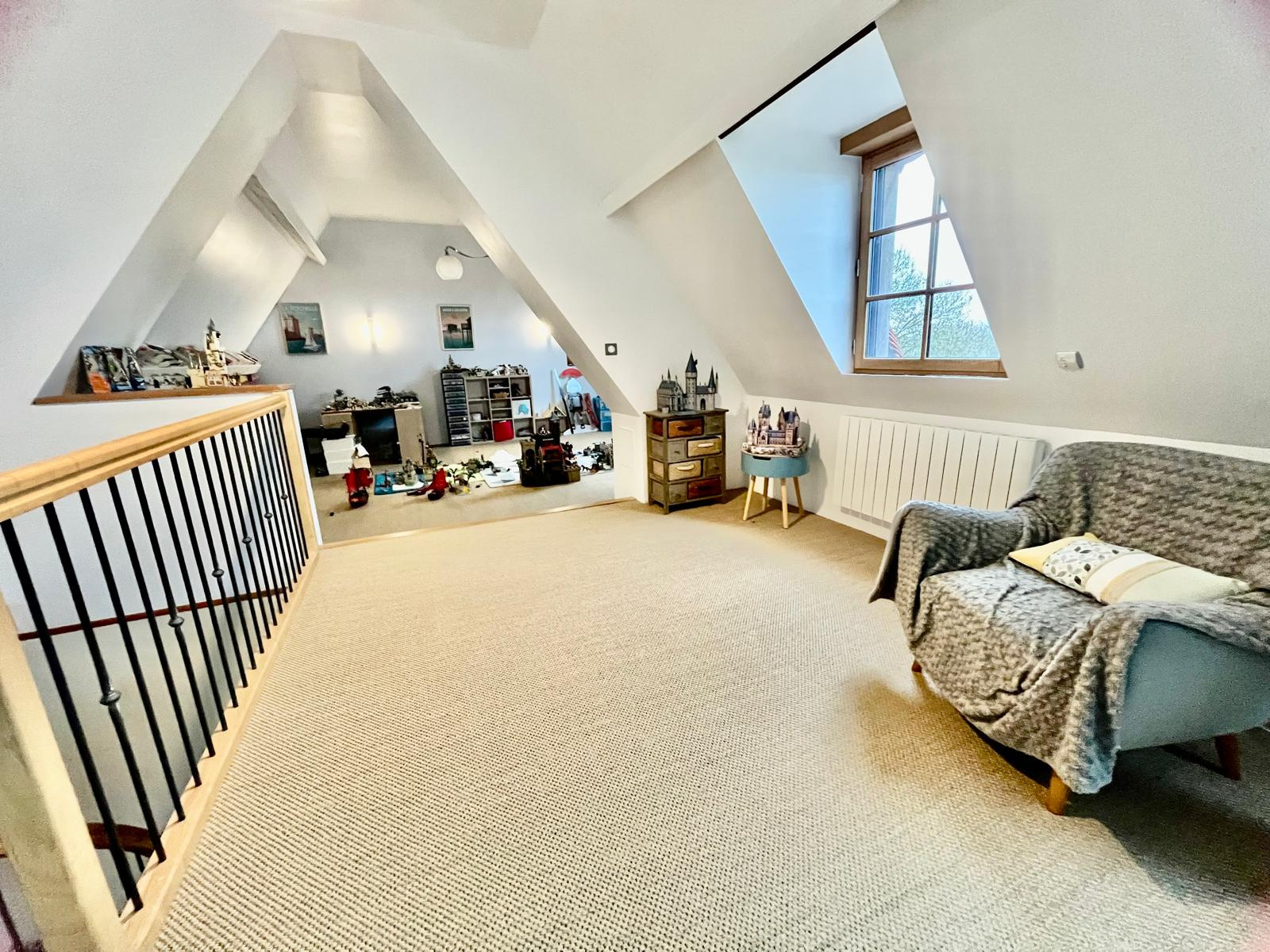 - au premier étage, une grande mezzanine, 3 chambres, une salle d'eau et des wc.