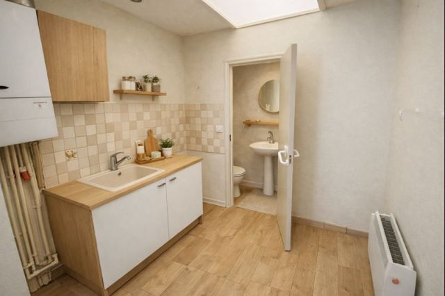 Elle se compose : au RDC, salon/séjour, cuisine, salle d'eau avec WC.
