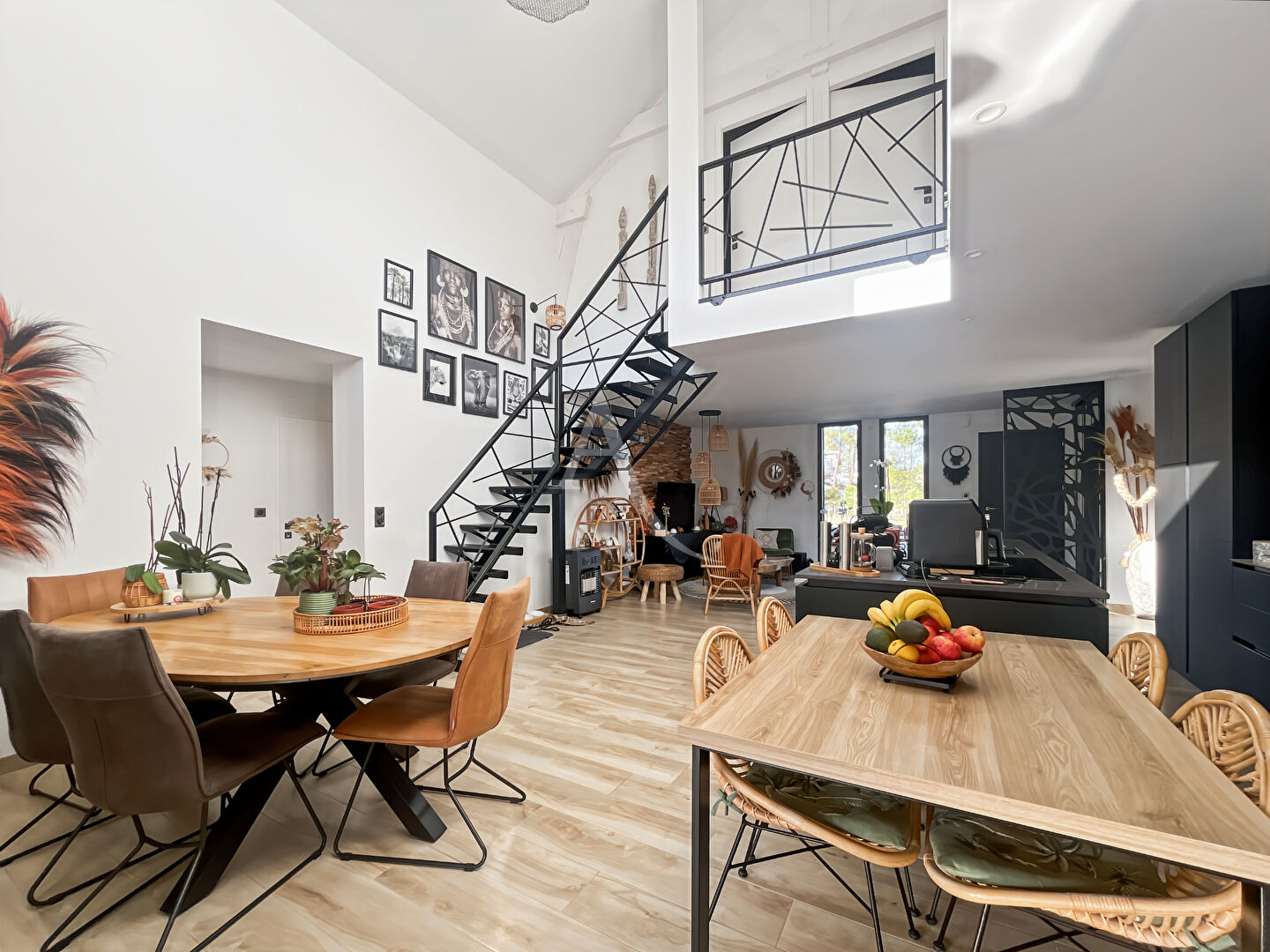 Dès l'entrée, vous découvrirez une superbe pièce de vie lumineuse de près de 50 m², avec une cuisine américaine aménagée et équipée, idéale pour partager des moments conviviaux en famille ou entre amis. De larges ouvertures en aluminium offrent une belle luminosité et une continuité naturelle vers l'extérieur.