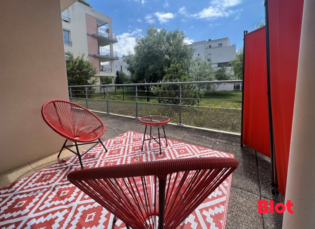 L'appartement se compose d'une entrée, d'un lumineux salon séjour prolongé par une cuisine aménagée. Le tout donnant accès de plain pied à un extérieur composé d'une terrasse d'environ 30m² idéalement exposé SUD et OUEST, d'un cellier.
