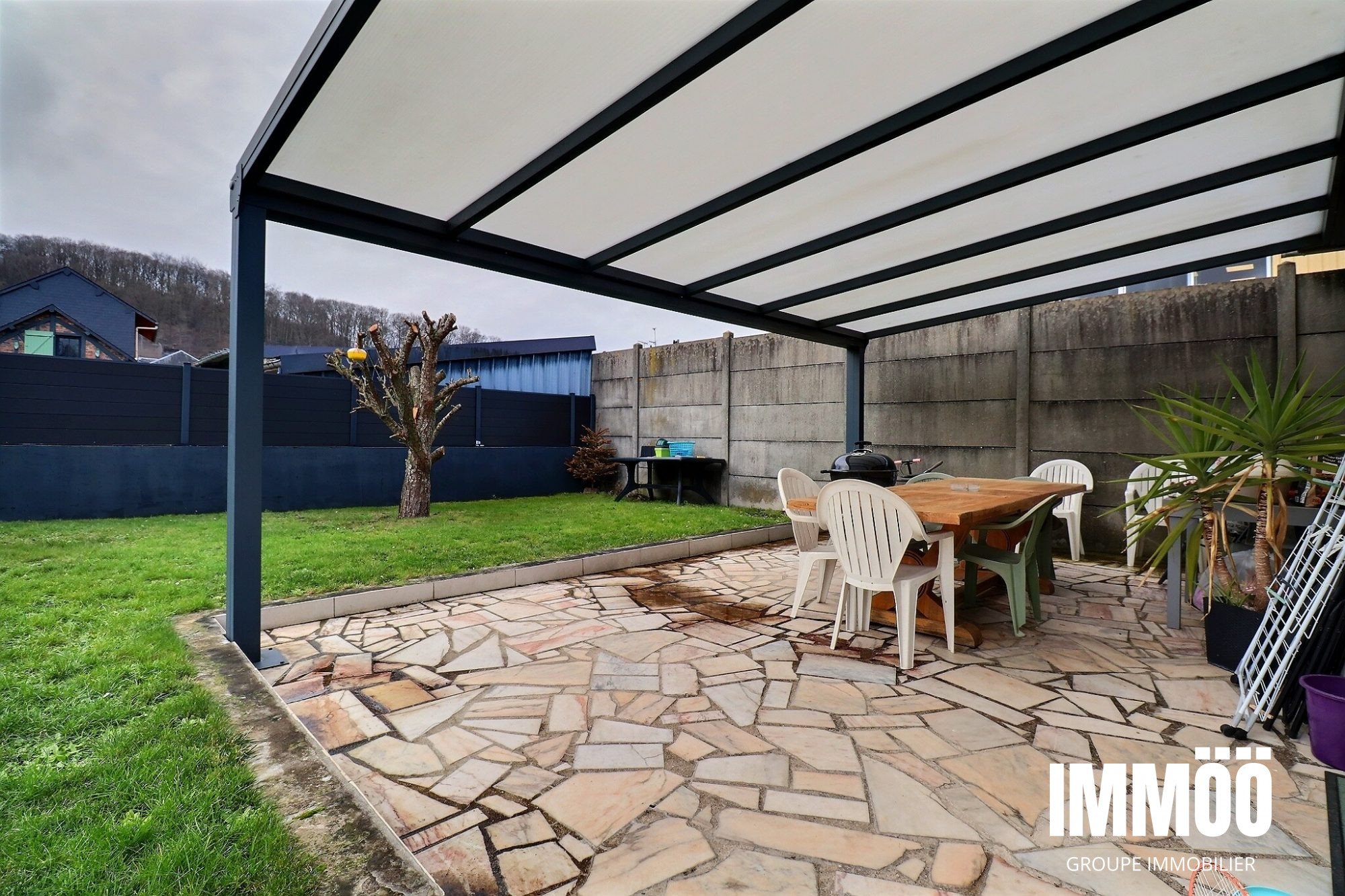 À l'extérieur, vous profiterez d'un joli jardin avec terrasse ainsi que d'une pergola d'environ 30 m².