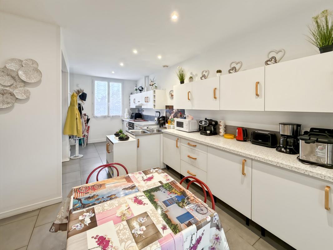 Elle se compose d'un séjour / salle à manger lumineux et convivial, idéal pour partager des moments en famille ou entre amis, ainsi que d'une grande cuisine aménagée et entièrement équipée, pensée pour le quotidien.