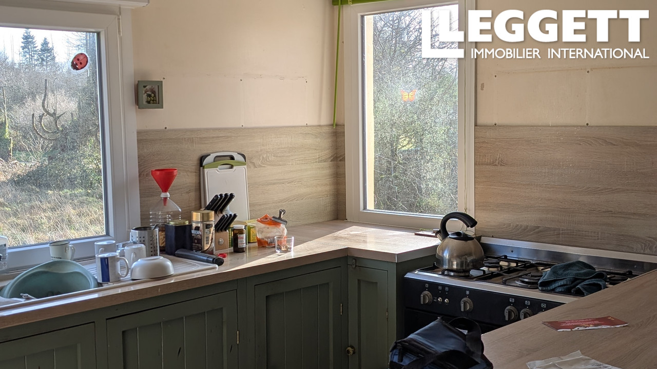 A39760MEJ29 - Niché à quelques minutes du pittoresque lac de Brennilis, ce bungalow de 2 chambres, étonnamment spacieux et lumineux, offre une vie tranquille à la campagne, au coeur de la Bretagne. Située au sein d'un jardin arboré de 5 200 m², la propriété dispose d'une véranda à double vitrage avec terrasse, d'une cuisine ouverte et d'un poêle à bois fournissant à la fois l'eau chaude et le chauffage central. Avec ses multiples dépendances, sa maison d'été alimentée en électricité et sa proximité avec les commodités du village, les promenades au bord du lac et les Monts d'Arrée, c'est une résidence permanente idéale ou un lieu de villégiature paisible.