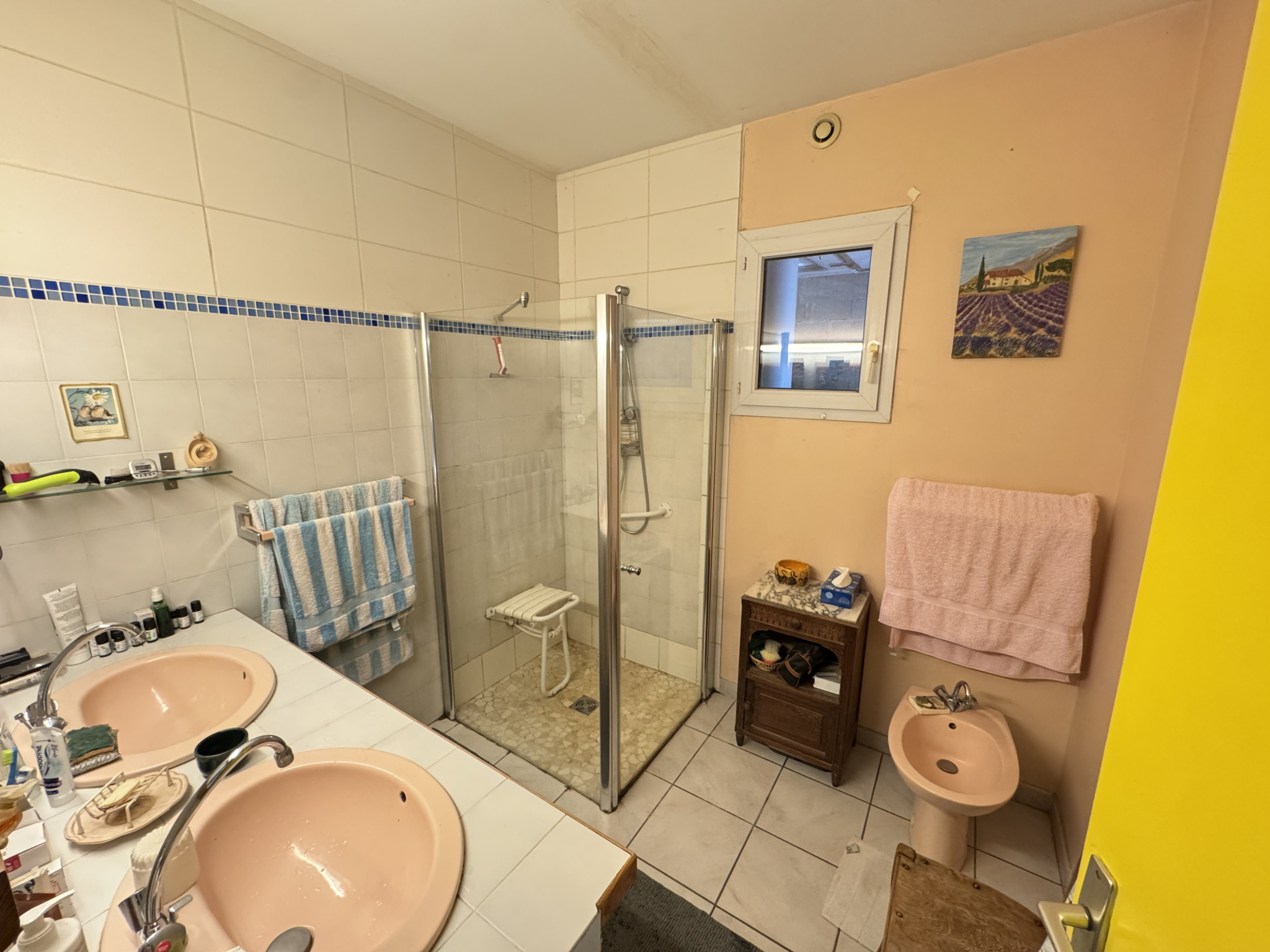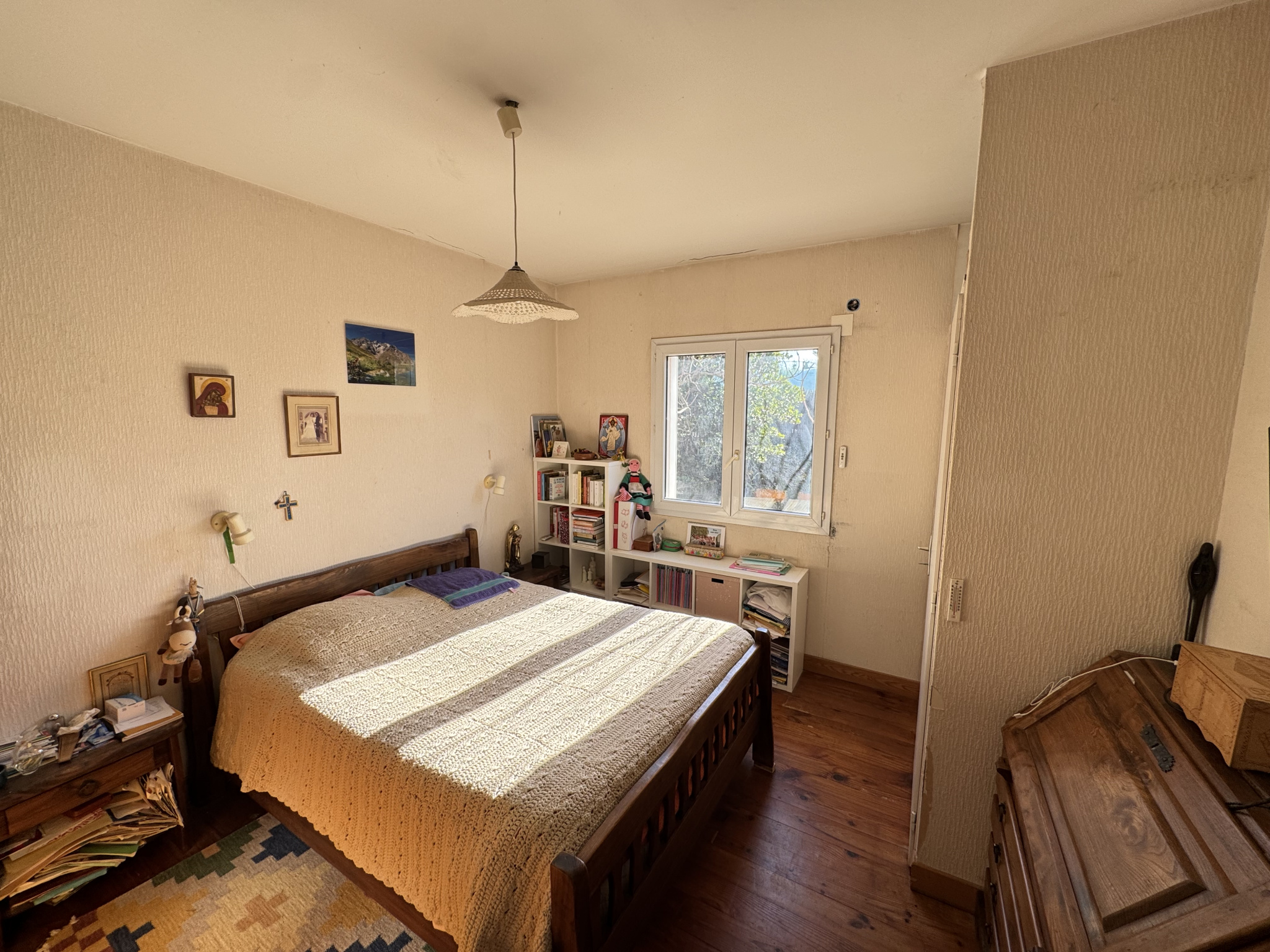 Construite en 1990 sur deux niveaux, cette villa offre un plain-pied avec séjour-salon, cuisine équipée, chambre, bureau, salle d'eau avec douche italienne, lingerie et wc.