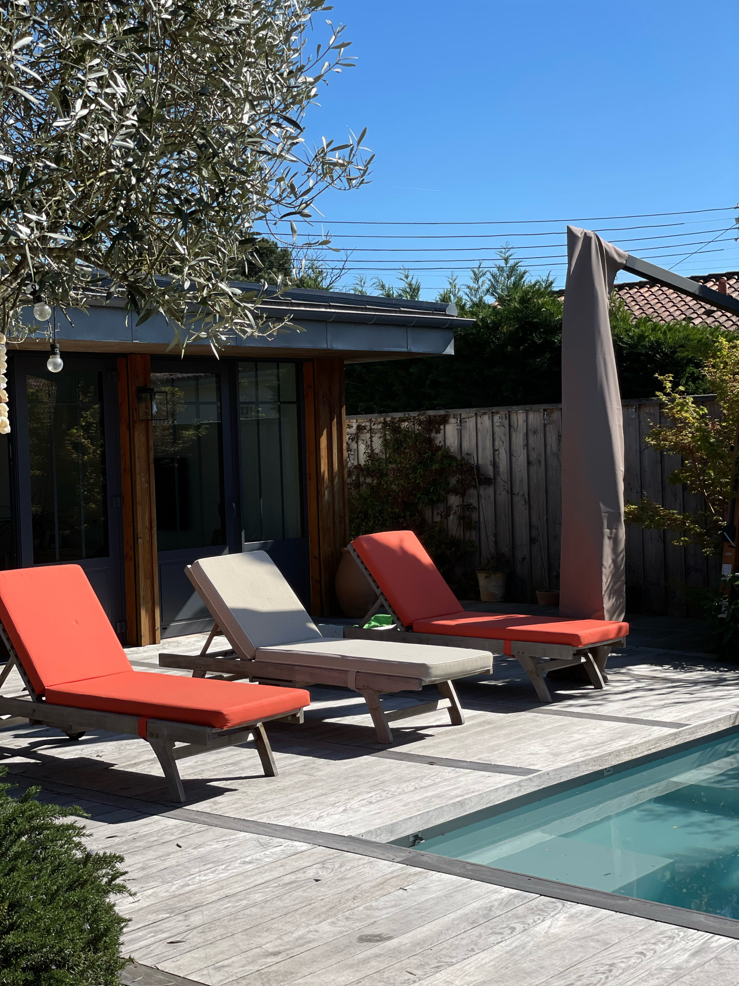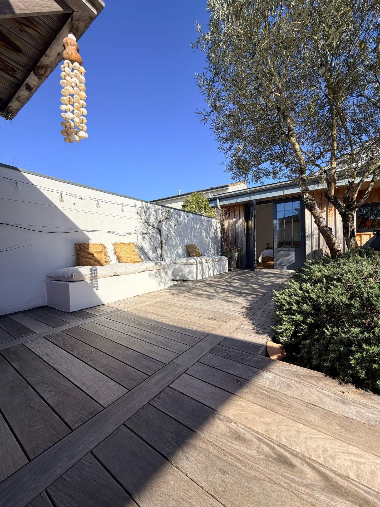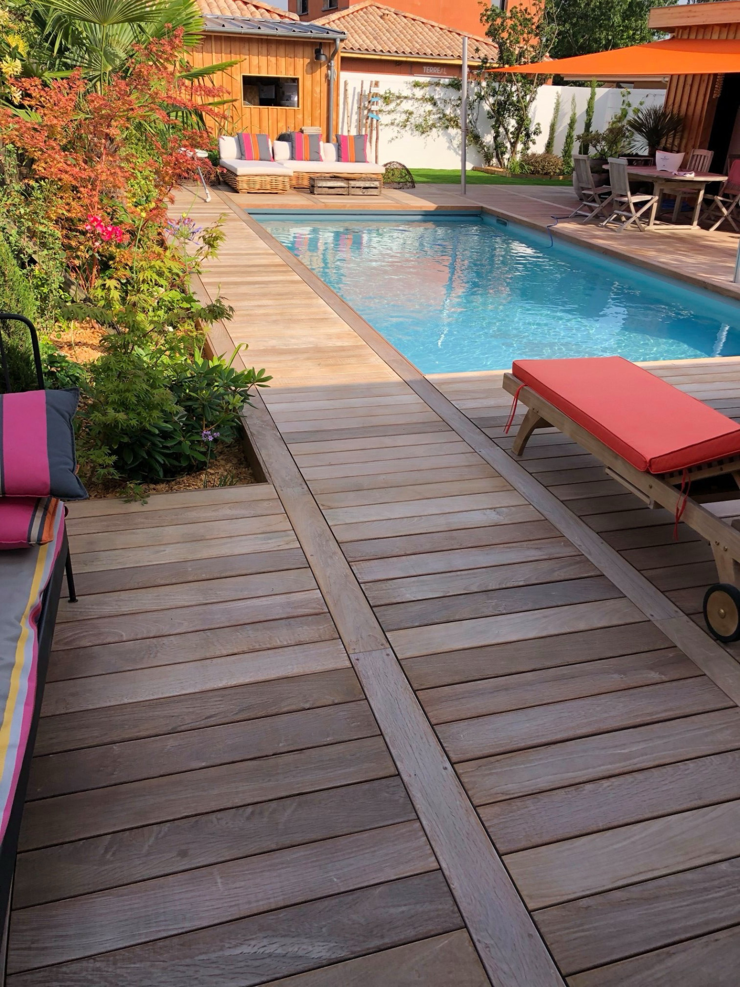 À l'extérieur, le jardin paysager, véritable havre de paix, se prête aussi bien aux moments de repos qu'aux instants de partage en famille ou entre amis.
