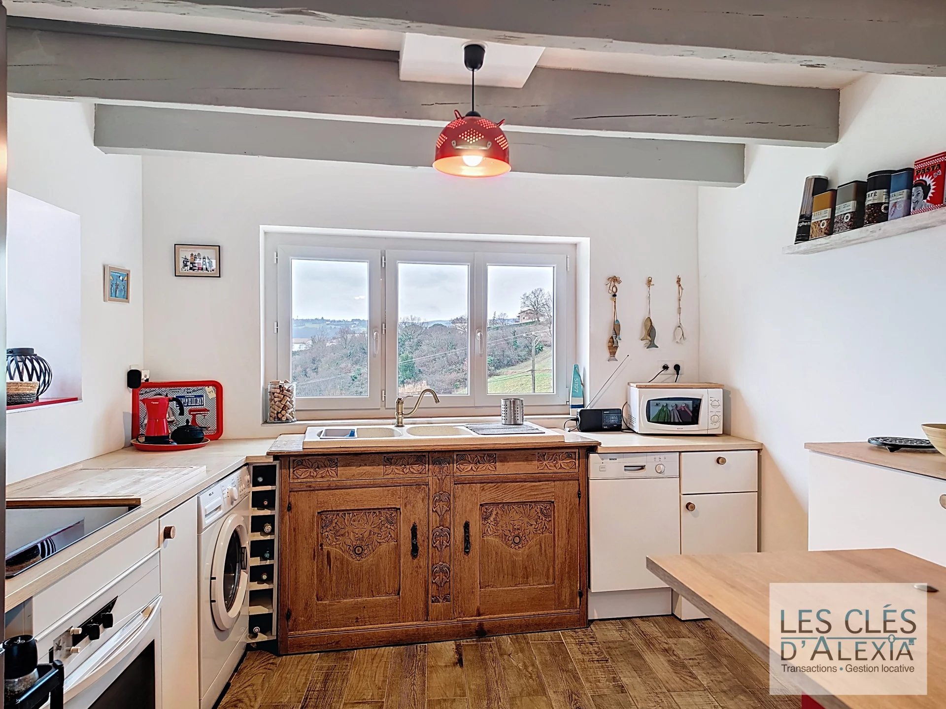 Dès l’entrée, vous découvrirez un rez-de-chaussée fonctionnel et lumineux, composé d’une cuisine aménagée et équipée, d’un salon-séjour chaleureux ouvrant sur un balcon avec une très belle vue, ainsi que d’une salle d’eau avec toilettes.