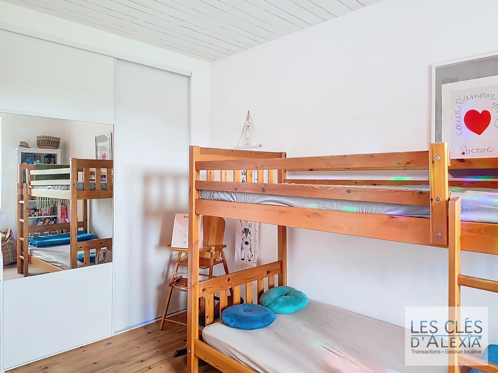 À l’étage, l’espace nuit offre trois belles chambres confortables et un toilette indépendant, idéal pour la vie de famille.
