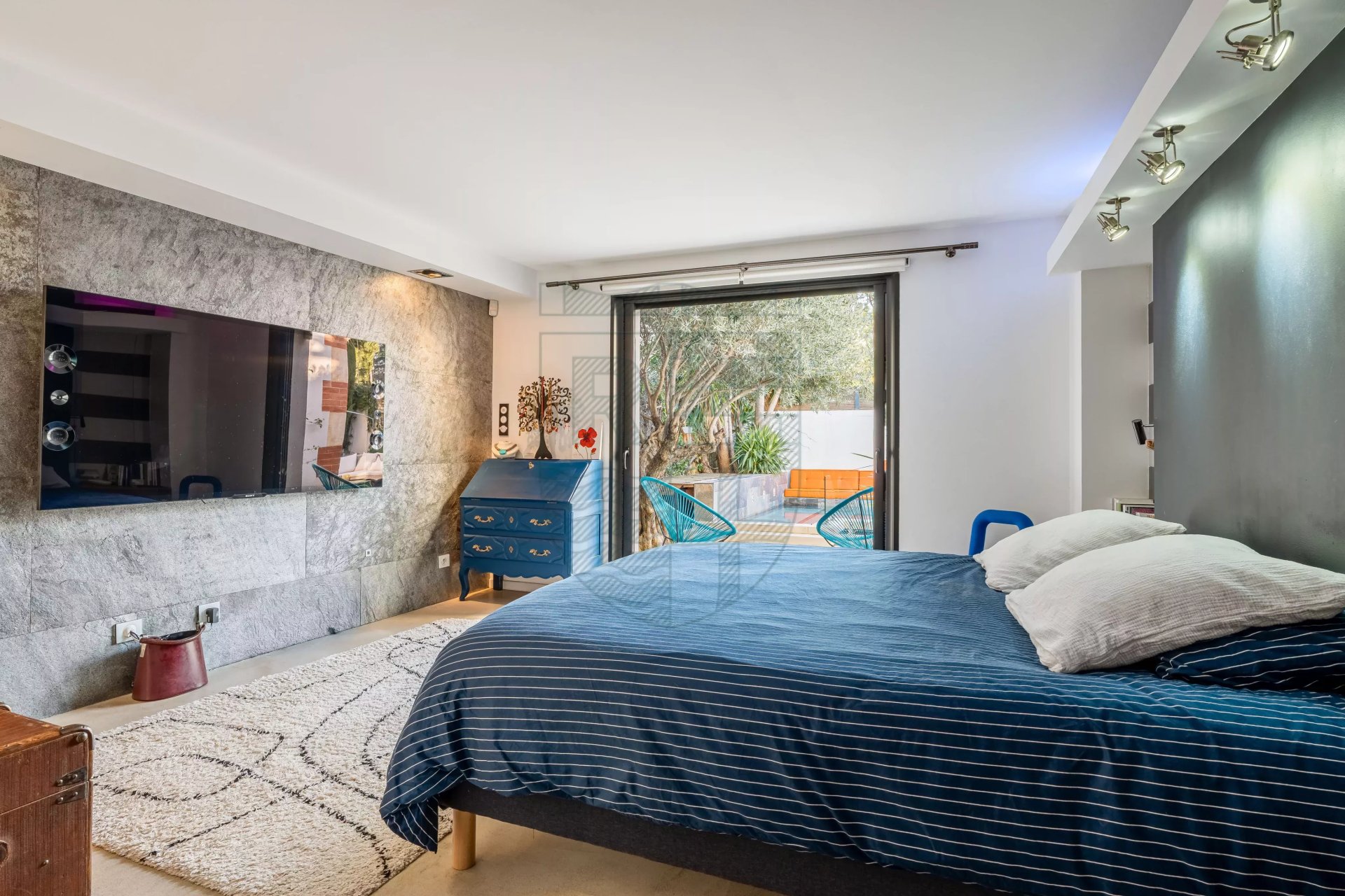 La maison est entièrement ouverte sur un jardin paysager intimiste et la piscine à débordement. Son exposition sud, Est et Ouest assure une luminosité optimale tout au long de la journée.