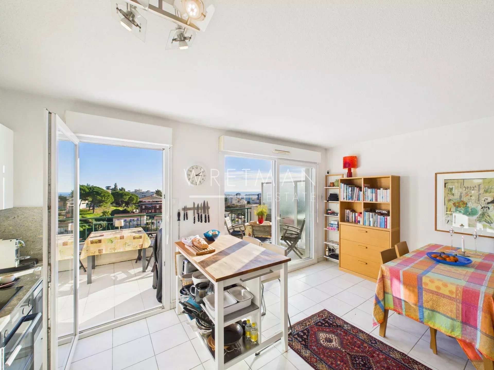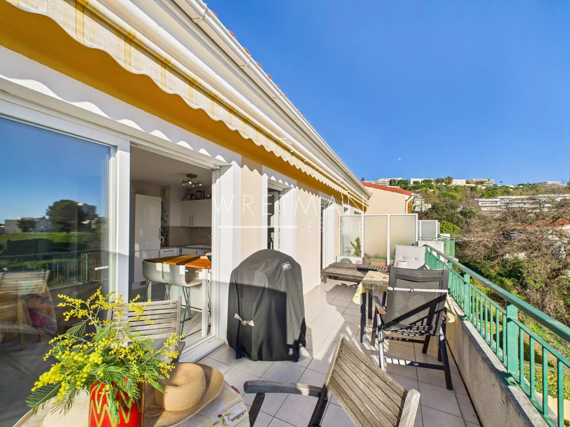 Cet appartement deux pièces, situé au 3? et dernier étage, se compose d’un séjour lumineux et ensoleillé avec cuisine ouverte, donnant sur une vaste terrasse exposée plein sud, offrant une vue dégagée sur la mer et les montagnes. Il comprend également une chambre spacieuse avec salle de bain et WC.
