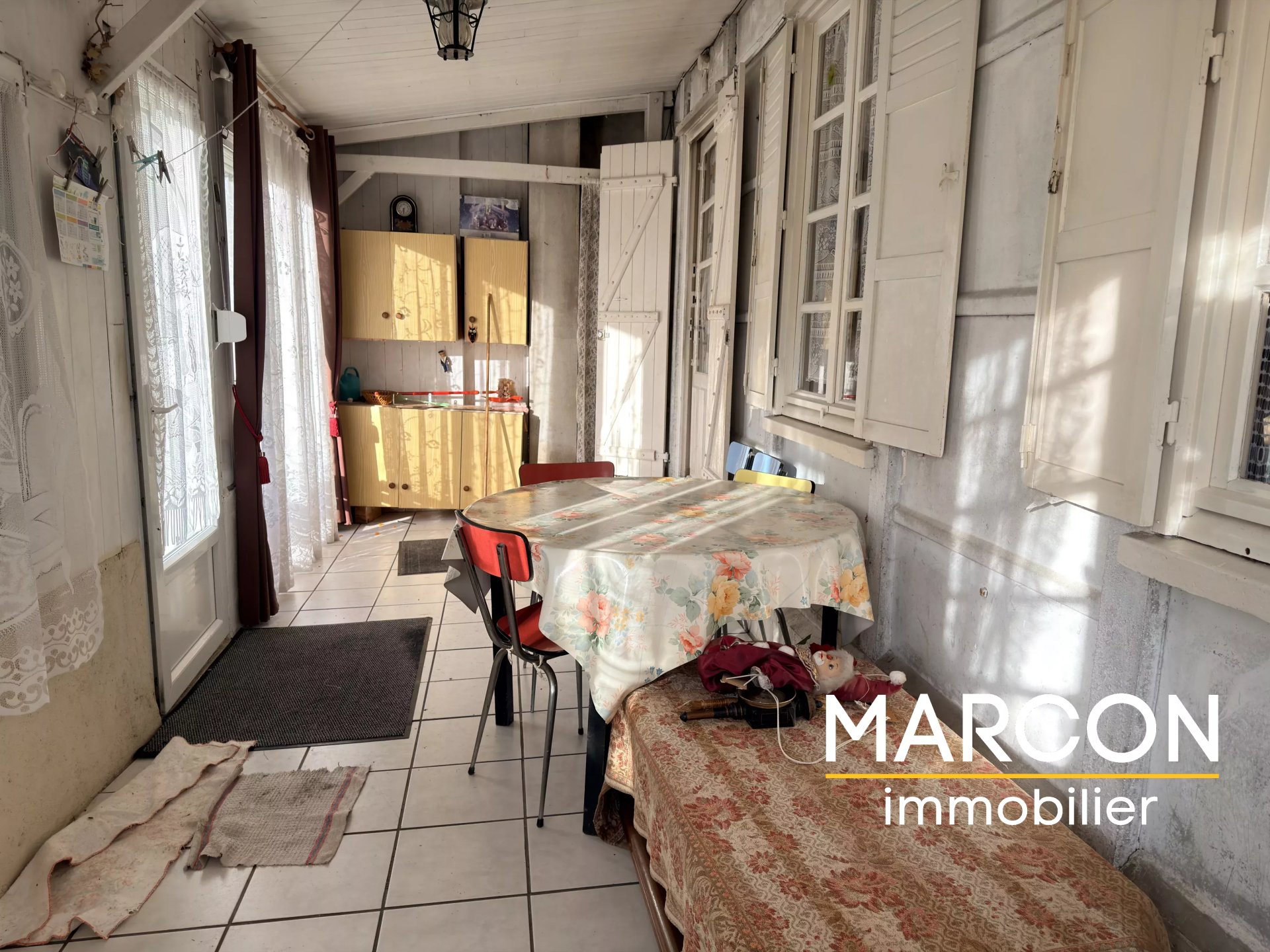 Elle dispose d’une véranda, d’un espace cuisine, d’un séjour, de deux chambres ainsi que d’une salle d’eau avec WC. Un garage indépendant complète l’ensemble.