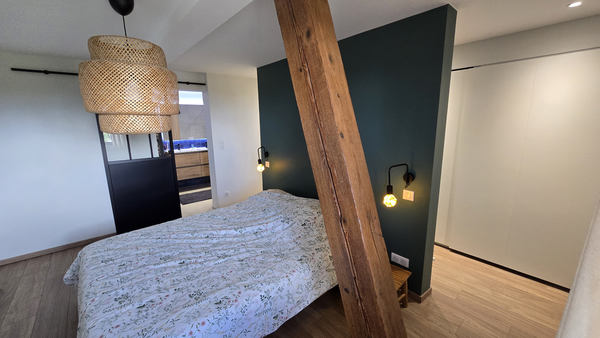 Un bureau indépendant complète l'ensemble, parfaitement adapté au télétravail ou à une activité créative.