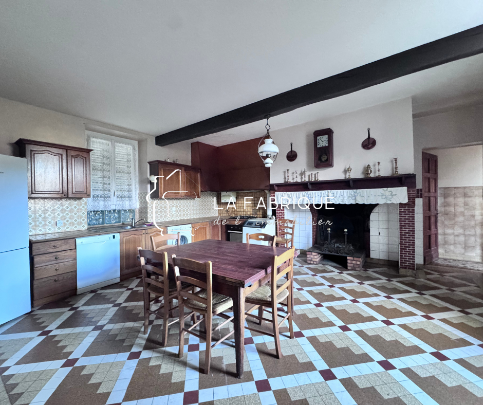 Dès l'entrée, le charme opère. Les parquets anciens et la tommette, marqués par les années, racontent les pas d'hier. Les hauteurs sous plafond offrent une respiration précieuse. La cuisine d'époque, avec sa cheminée monumentale, évoque les grandes tablées, les hivers au coin du feu, les étés à refaire le monde fenêtres ouvertes.