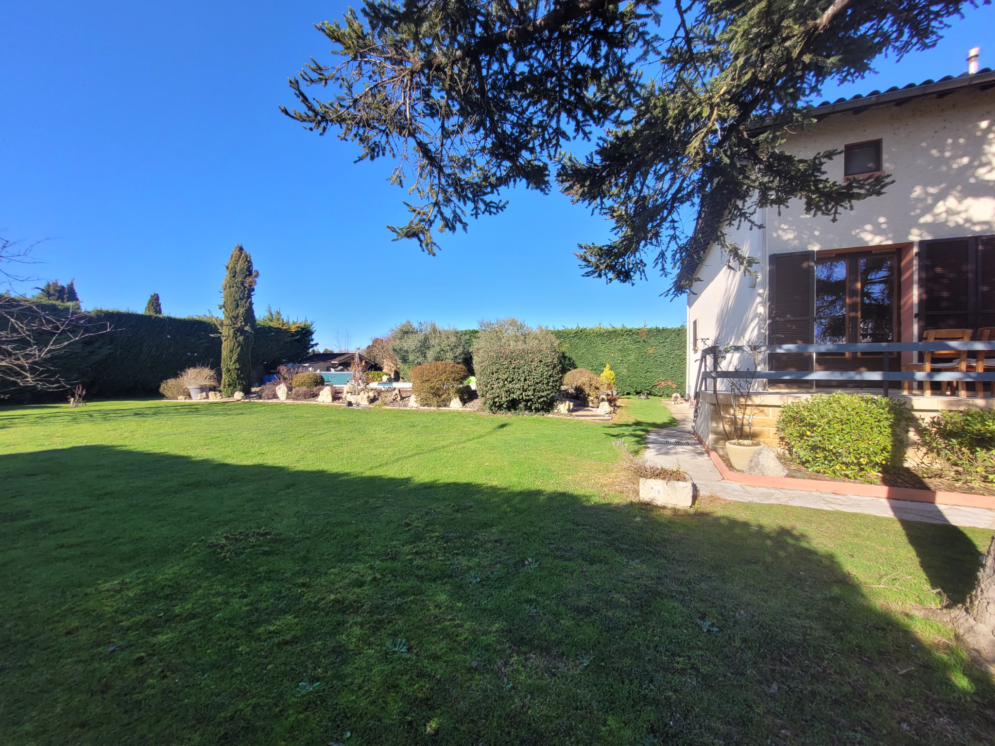 Côté jardin, vous pourrez apprécier la grande piscine chauffée et sécurisée, un espace de stockage ainsi qu'un potager.