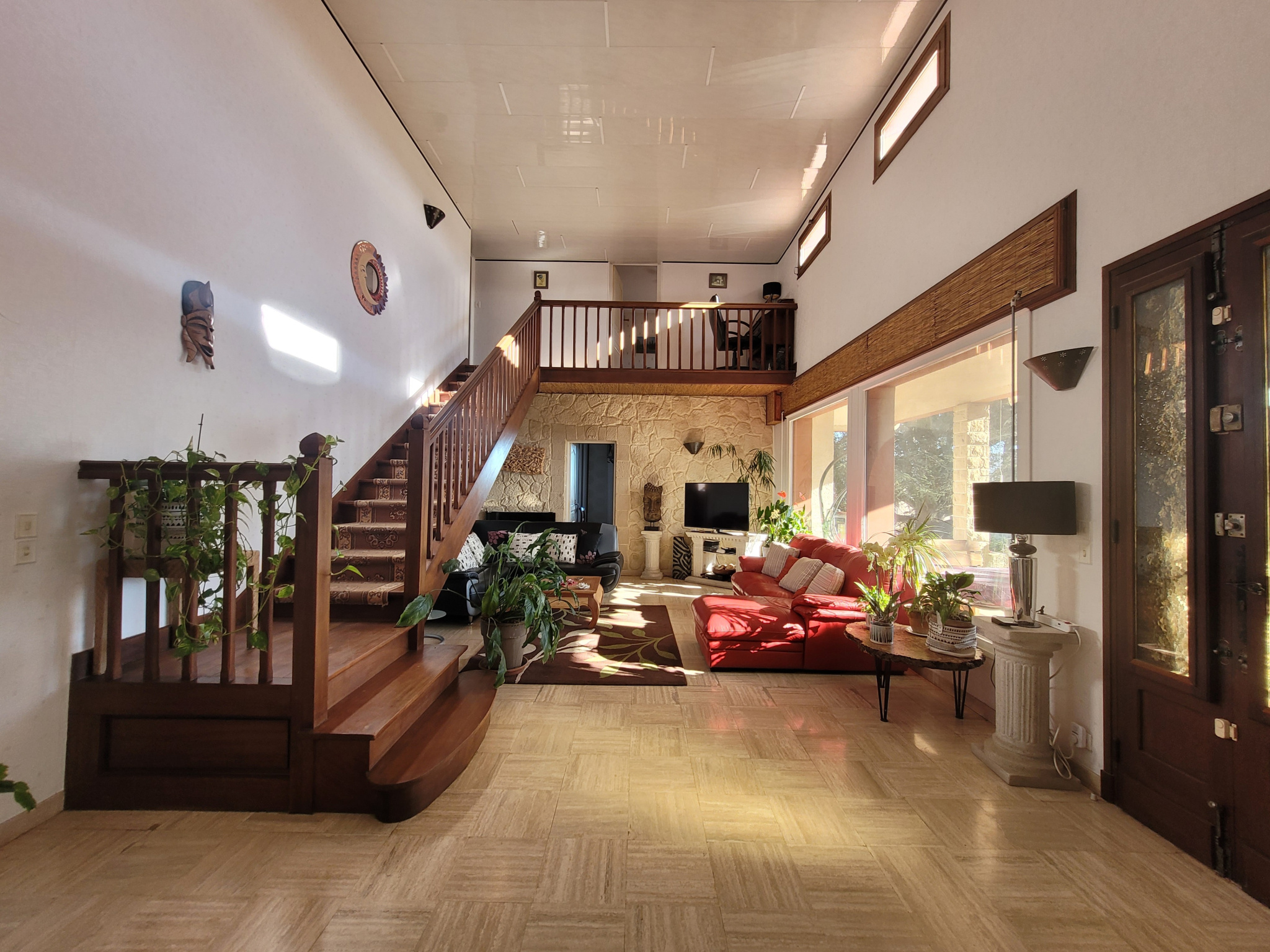A l'étage le couloir dessert une troisième chambre avec accès sur le balcon ainsi qu'une partie indépendante de 70 m2 comprenant une grande pièce de vie équipée de la climatisation réversible, une cuisine, un espace bureau, une quatrième chambre avec dressing et accès sur le balcon, un espace couchage, une pièce d'eau avec douche et toilette, ainsi que 30 m2 supplémentaires à aménager.