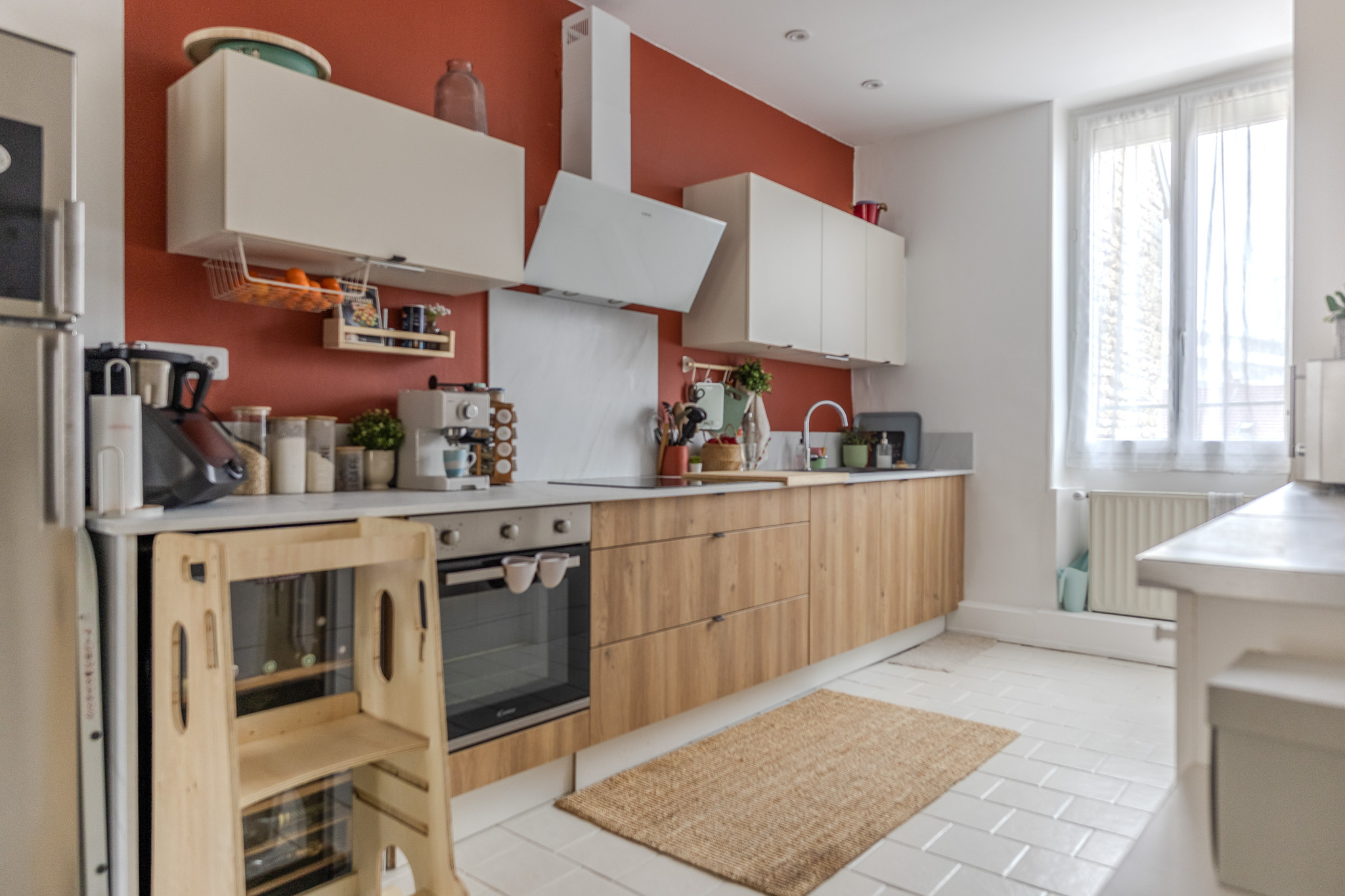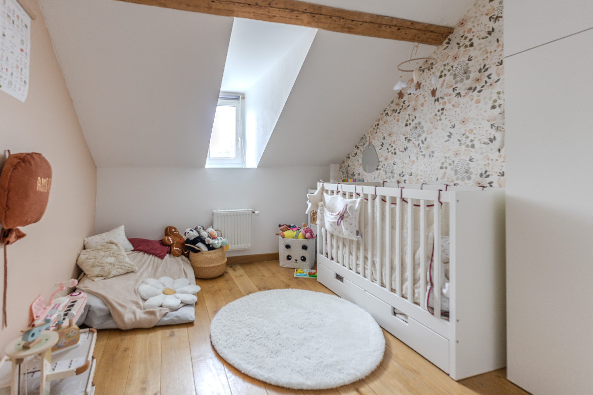 A l'étage, on retrouve trois chambres, L'agencement intelligent donne une véritable sensation de maison en ville.