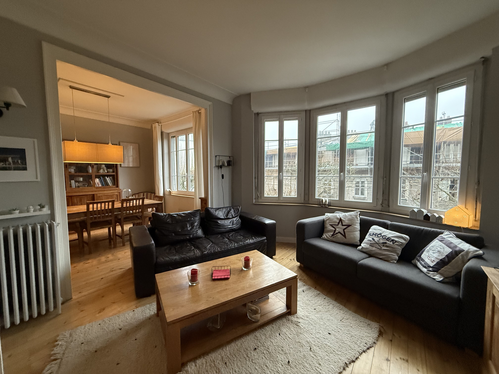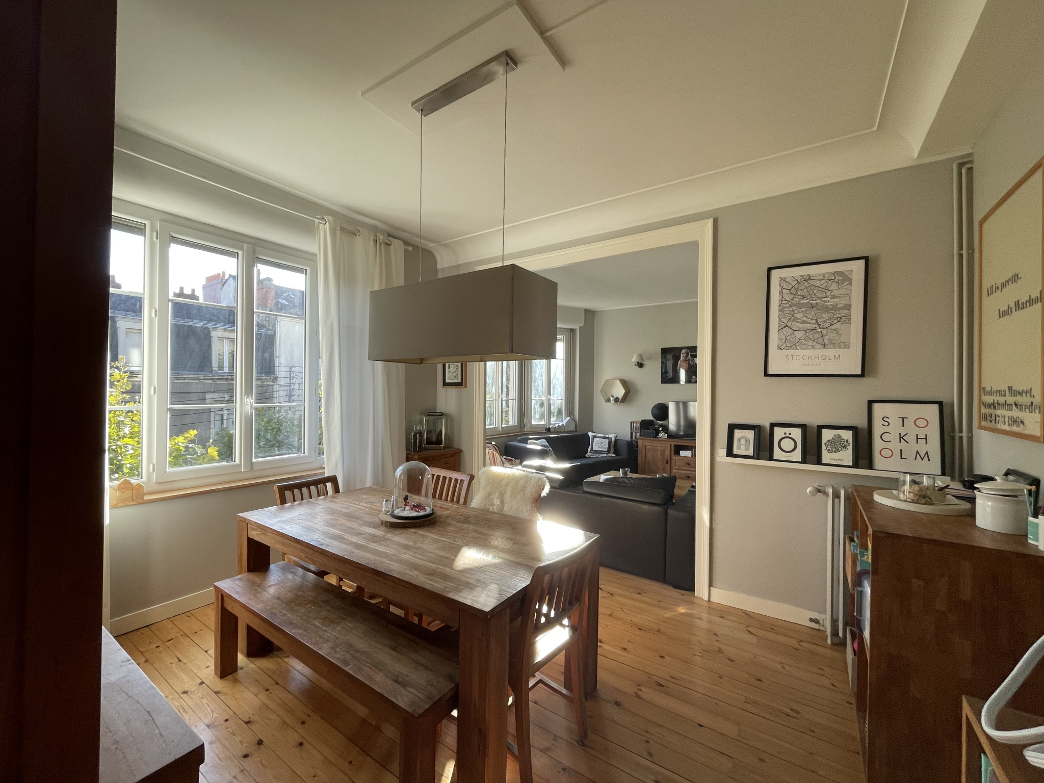 Dès l'entrée, le charme opère : double réception lumineuse, volumes harmonieux, parquet, hauteur sous plafond...Le salon est sublimé par un magnifique bow window, véritable écrin de lumière qui inonde la pièce et offre une vue dégagée plein sud. L'âme de l'ancien est bien là, élégante et intemporelle.