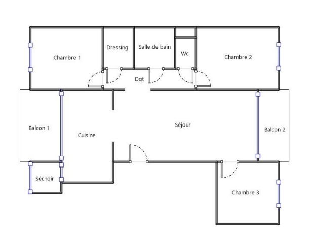 L'appartement dispose de trois chambres, d'une cuisine indépendante et d'espaces bien distribués, faciles à aménager selon les besoins. La salle de bains et les WC, d'origine, méritent un rafraîchissement -- une belle opportunité de personnalisation.