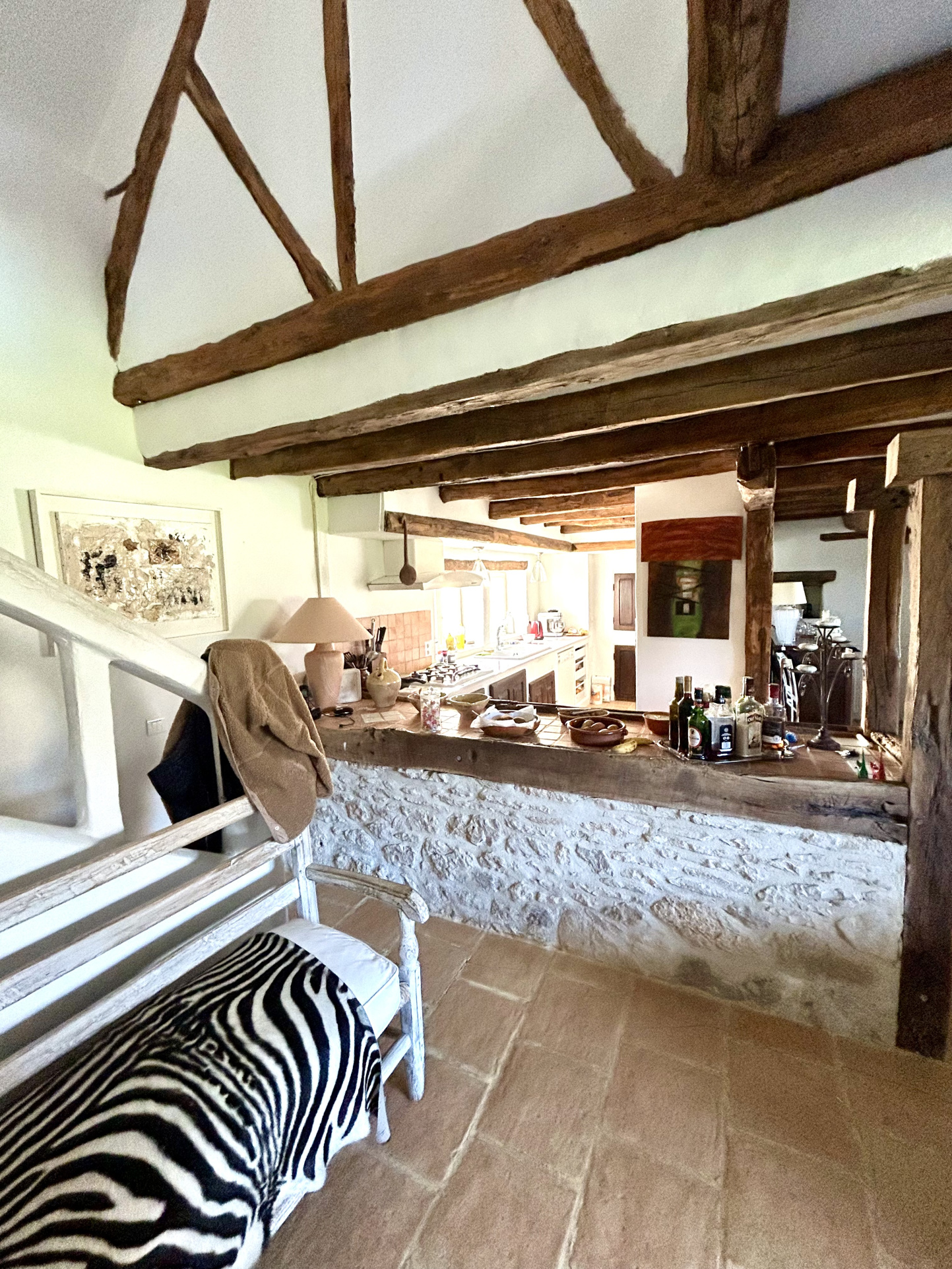 Ancienne grange en pierre entièrement rénovée dans les années 2000, la maison principale offre environ 130 m2 de charme : une vaste pièce de vie de 70 m2 organisée en salon avec insert, salle à manger et cuisine aménagée, puis une mezzanine avec bureau, dressing et coin nuit d'appoint. elle accueille trois chambres, dont deux suites avec salle d'eau et WC, et une troisième chambre disposant de son point d'eau et WC.
