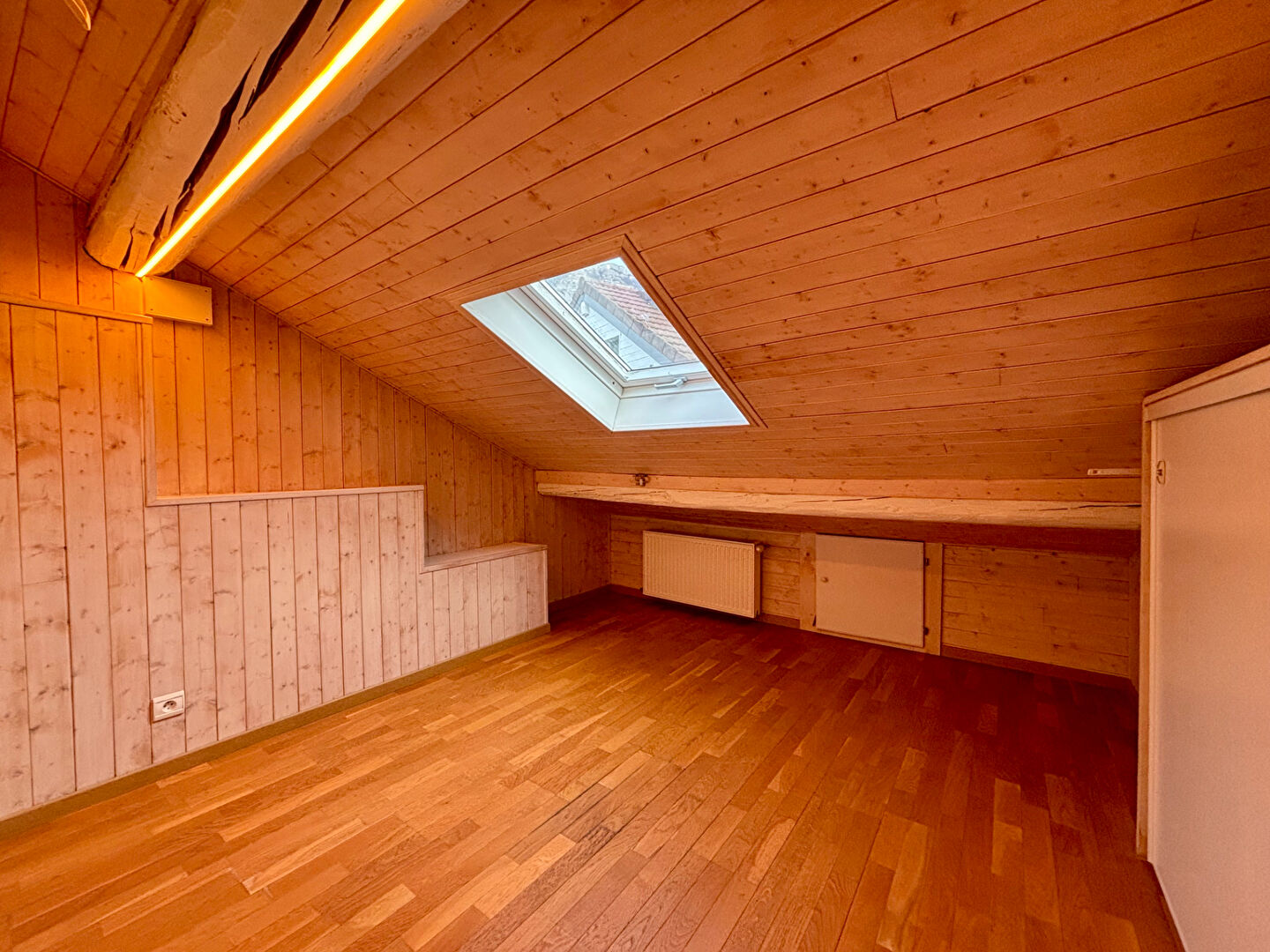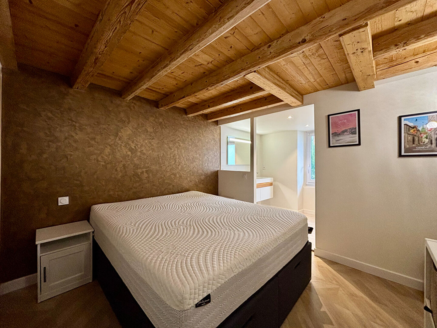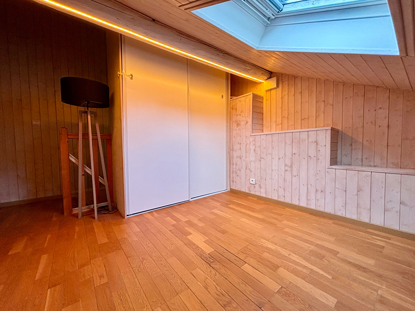 À l'étage, une chambre de 14 m² dispose de sa salle d'eau avec WC et donne accès à un dernier niveau pouvant faire office de dressing, bureau ou chambre d'appoint.