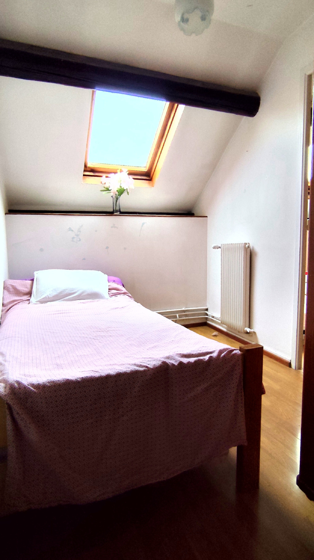 À l'étage : 2 chambres, une salle d'eau et une pièce noire faisant office de rangement.