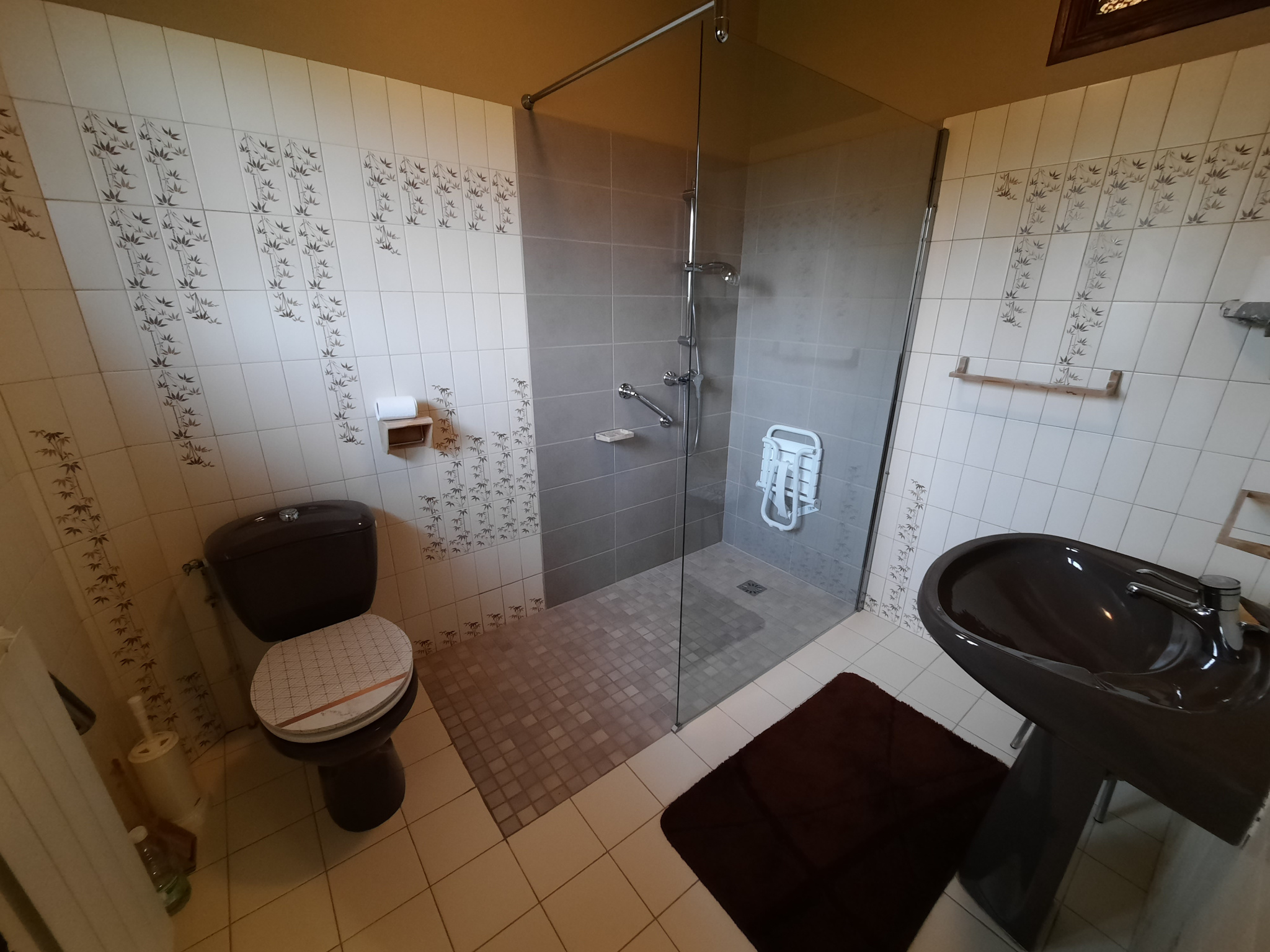Maison construite dans les années 80, dans un quartier résidentiel. Elle est composée d'une entrée, séjour avec cheminée + insert de 46 m2 environ, cusine indépendante, 3 chambres avec chacune leur salle d'eau, cellier/buanderie, WC et sous sol de 80 m2.