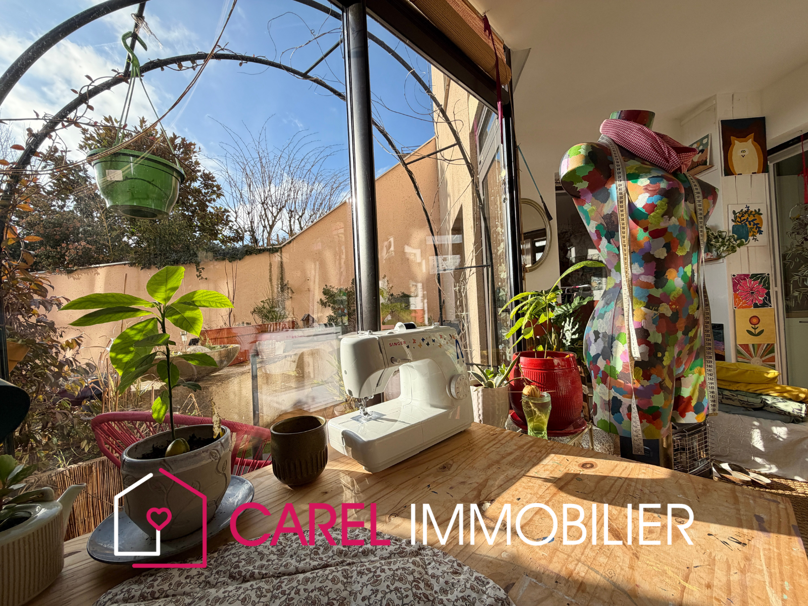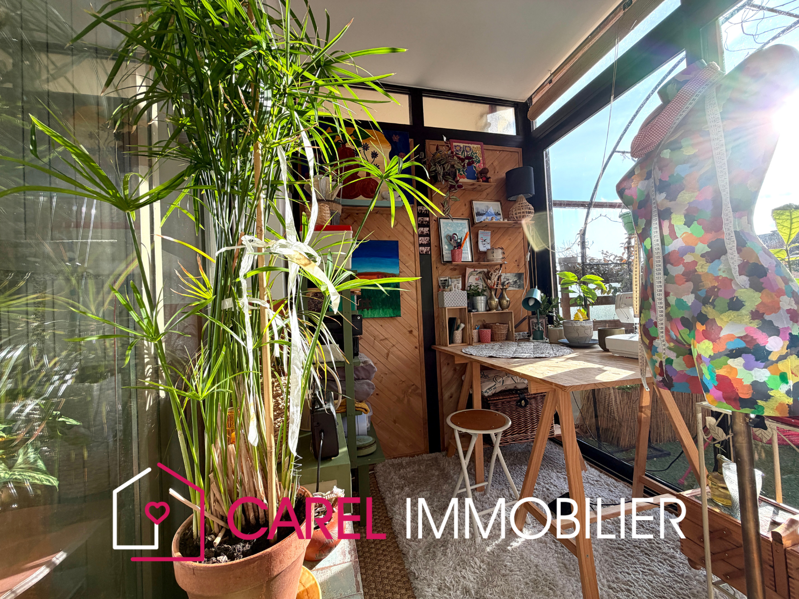 L'appartement s'organise ensuite autour d'une véranda baignée de lumière, véritable pièce de vie à part entière, à l'allure d'atelier d'artiste, prolongée par une terrasse exposée sud-est.