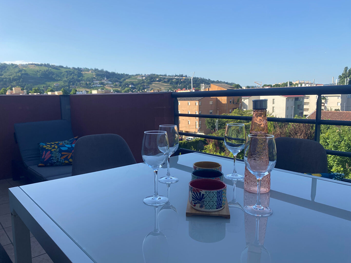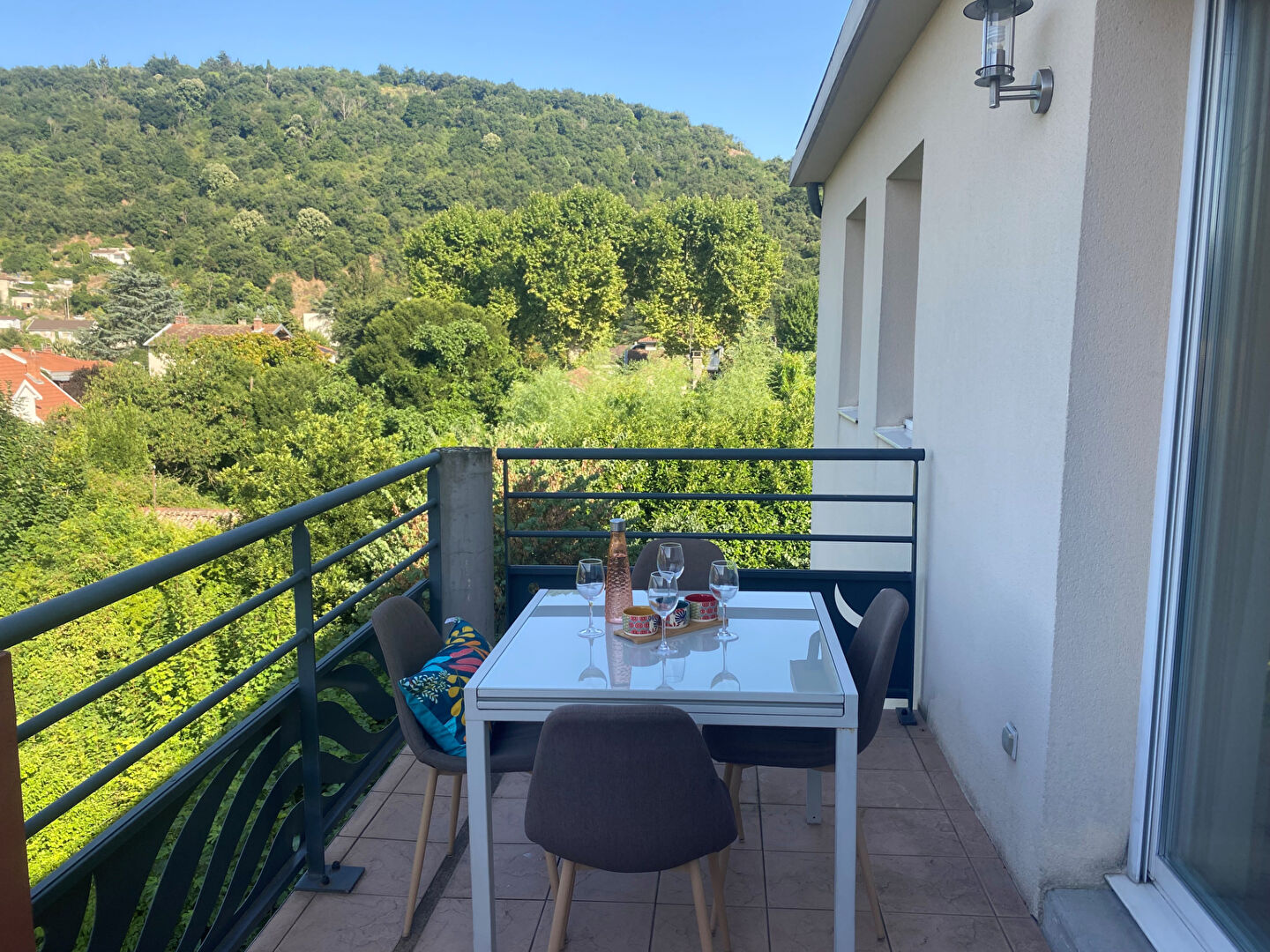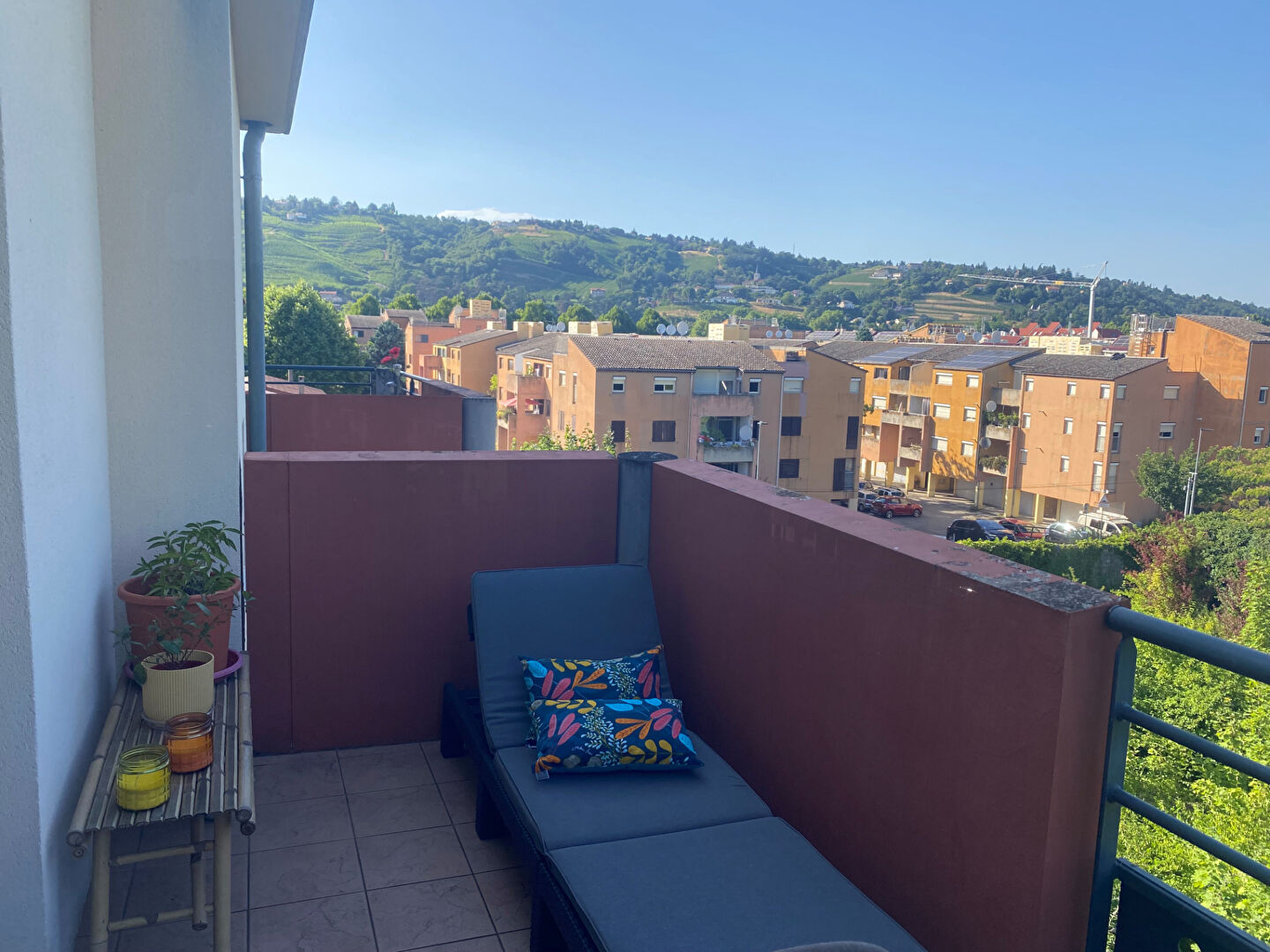 VIENNE SUD - dans une résidence sécurisée, au dernier étage : T3 au calme, il est composé d'une pièce à vivre avec cuisine CUISINELLA, intégralement équipée, donnant sur une terrasse avec vues sur les collines Viennoises.