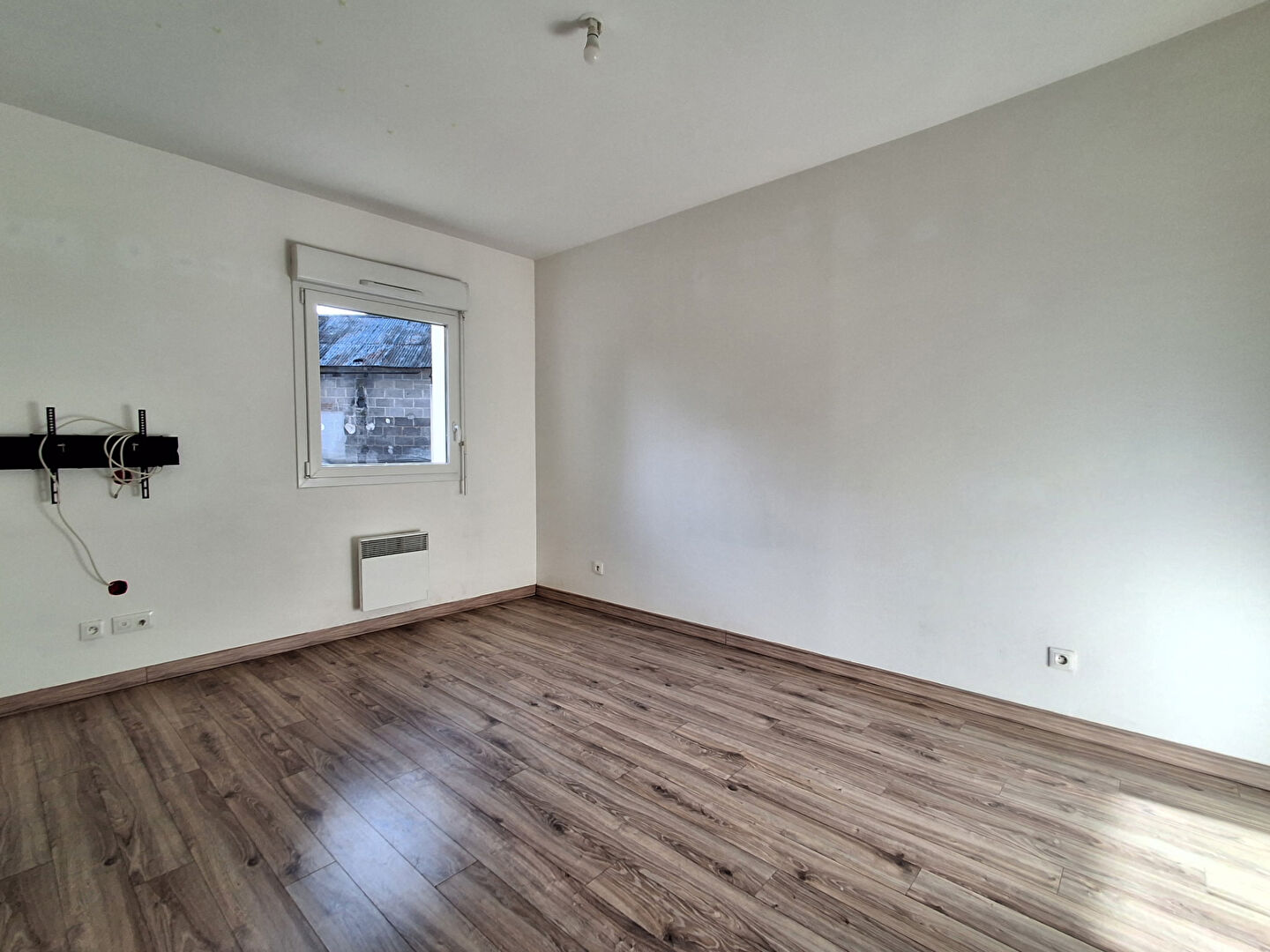 Côté nuit au calme : une chambre spacieuse située à l'arrière du bâtiment, offrant une vue paisible sur le parking privé.