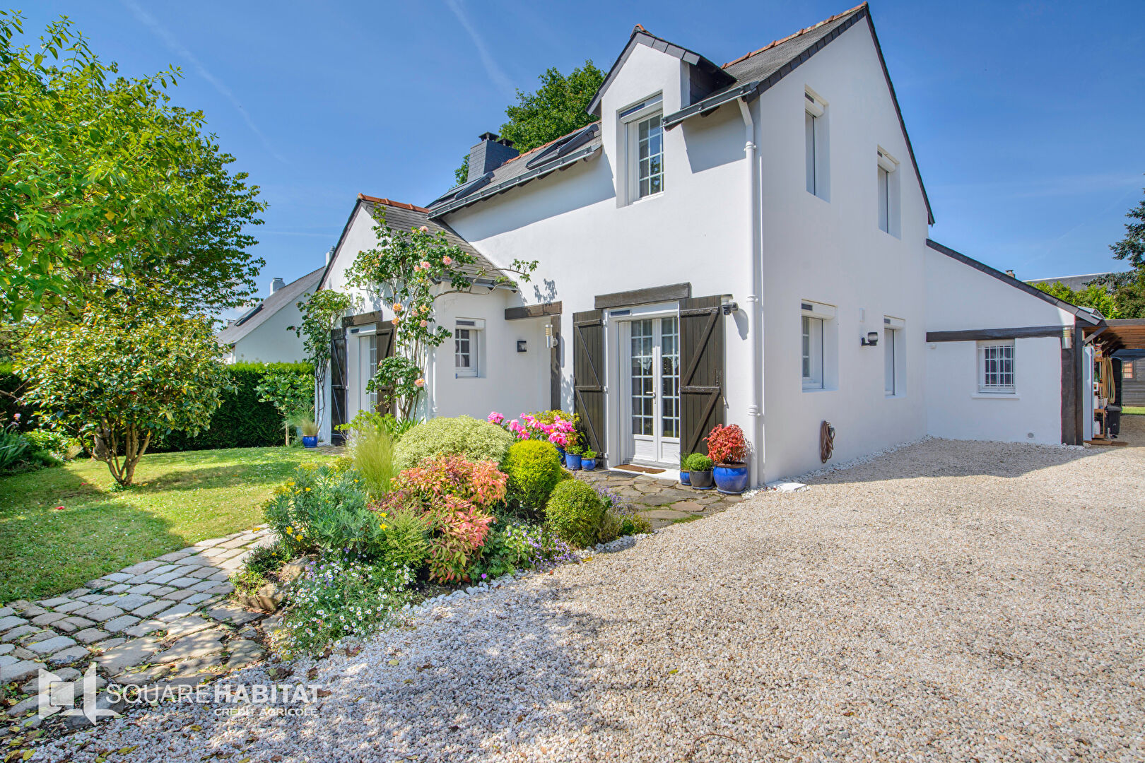 Implantée dans un très beau jardin arboré, elle dispose aussi d'un carport et 2 cabanons.
