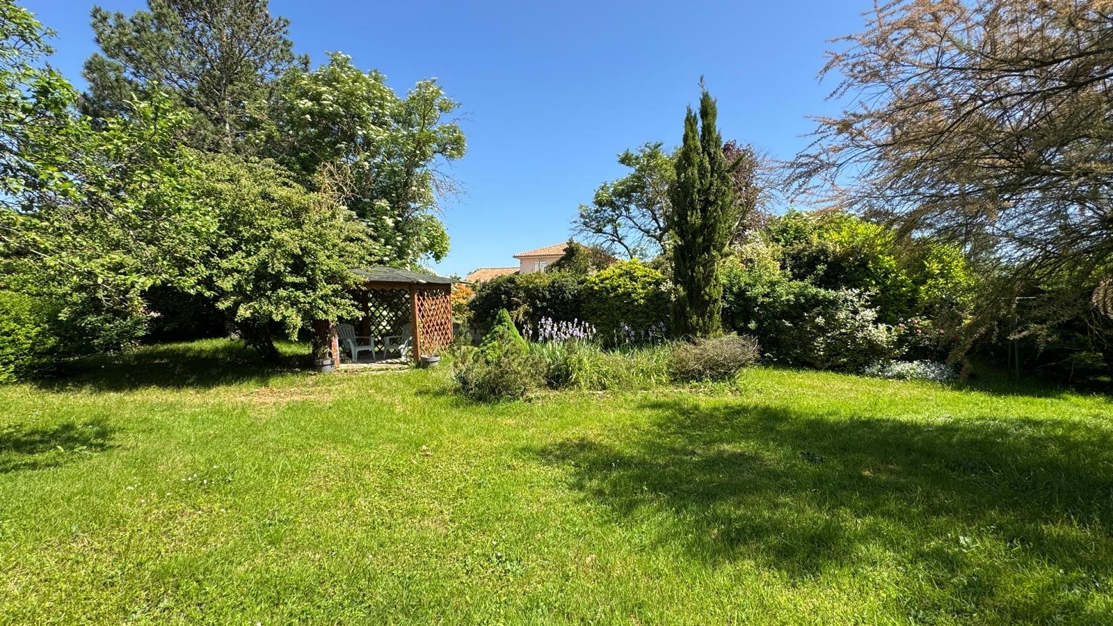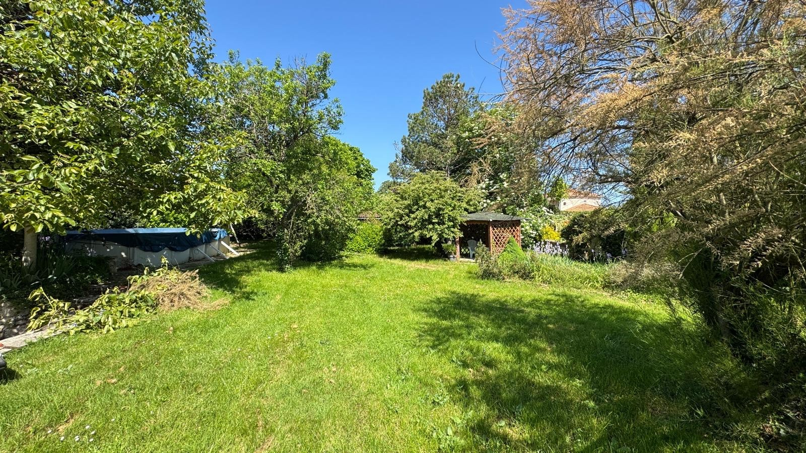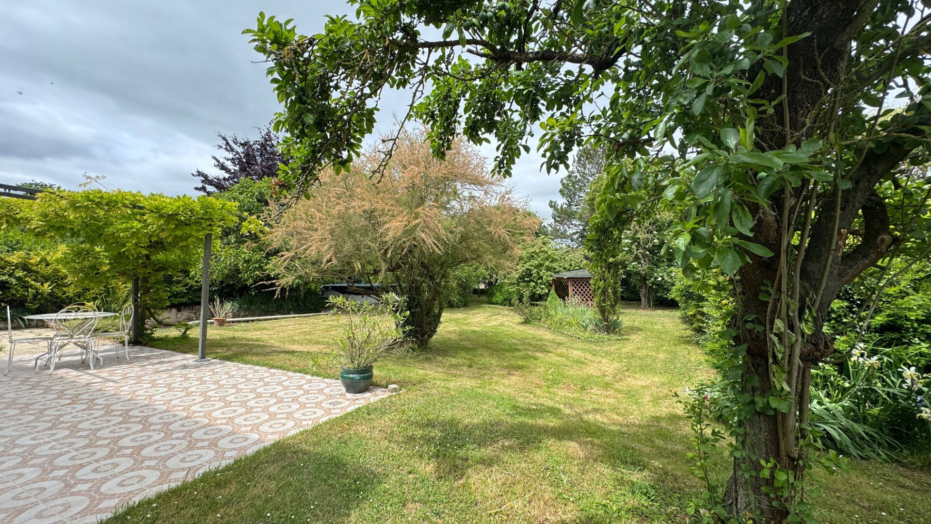 À l'extérieur, vous profitez d'un terrain arboré de 1445m², véritable havre de paix, parfait pour les moments en famille ou entre amis. Une piscine hors-sol complète ce cadre idyllique.