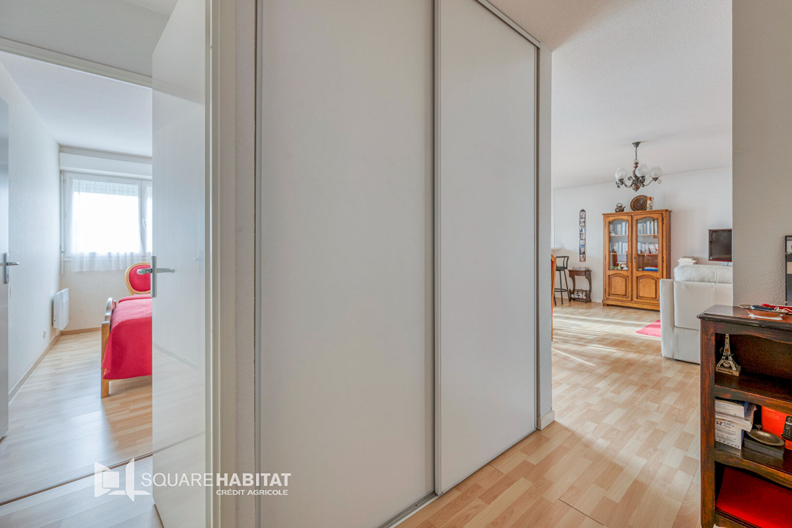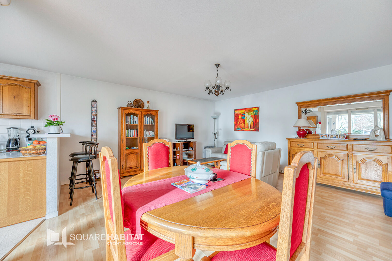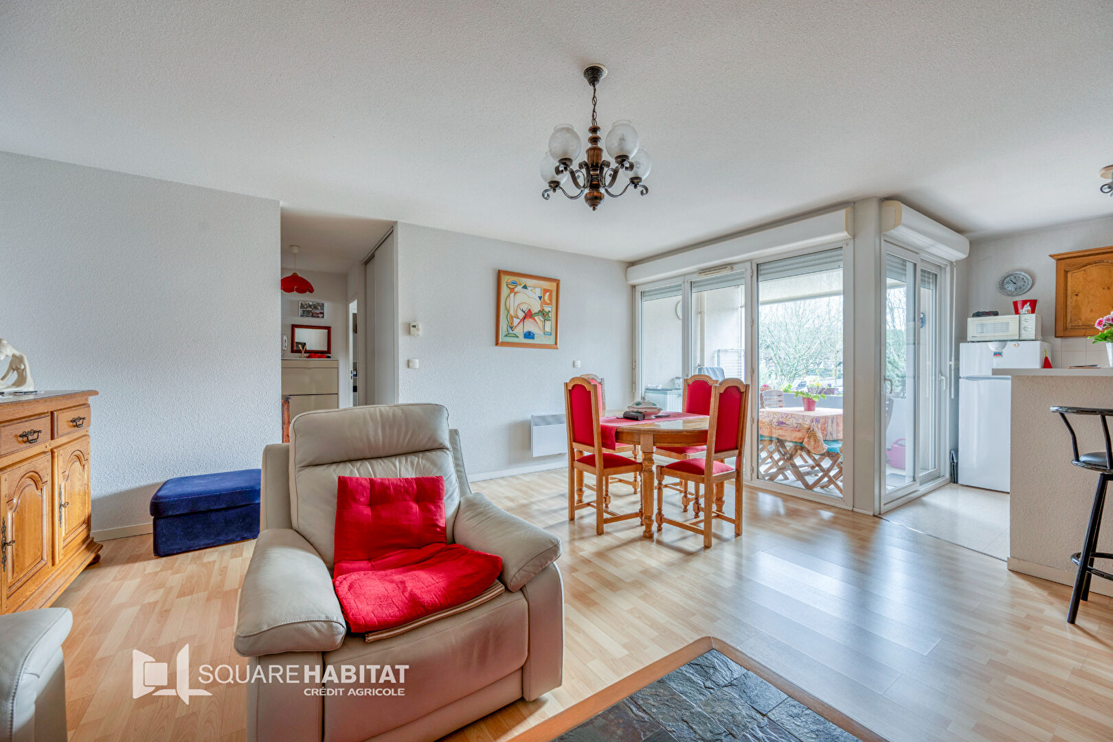 L'appartement se compose d'une entrée desservant une jolie pièce de vie lumineuse, salon/salle à manger avec cuisine ouverte.
