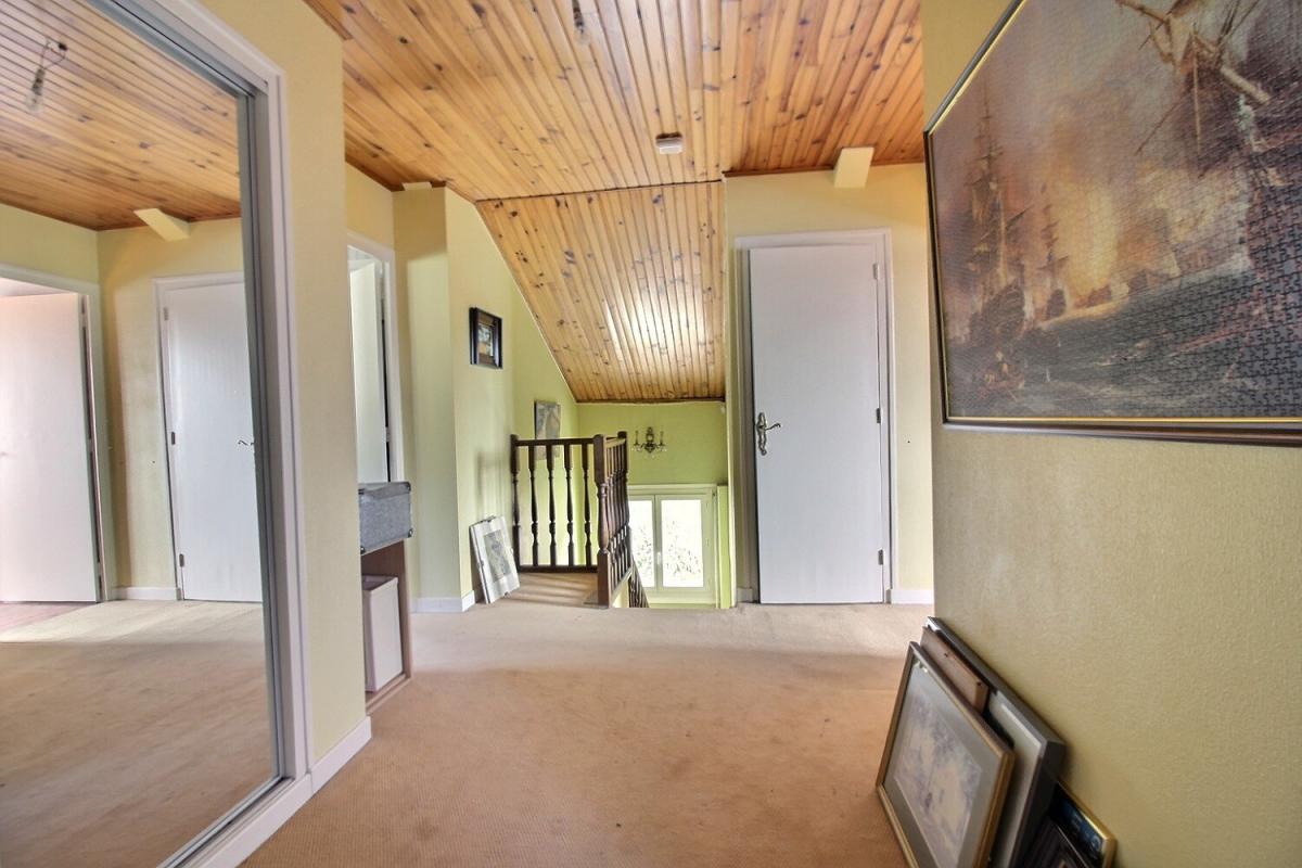 En effet, à l'entrée, un salon de 30 m² avec sa cheminée, une cuisine fermée de bonne facture, 6 chambres réparties sur 2 niveaux, 2 salles de bains (1 par niveau), 3 WC,1 salle de jeux (bureau, salle TV ou chambre supplémentaire possible).