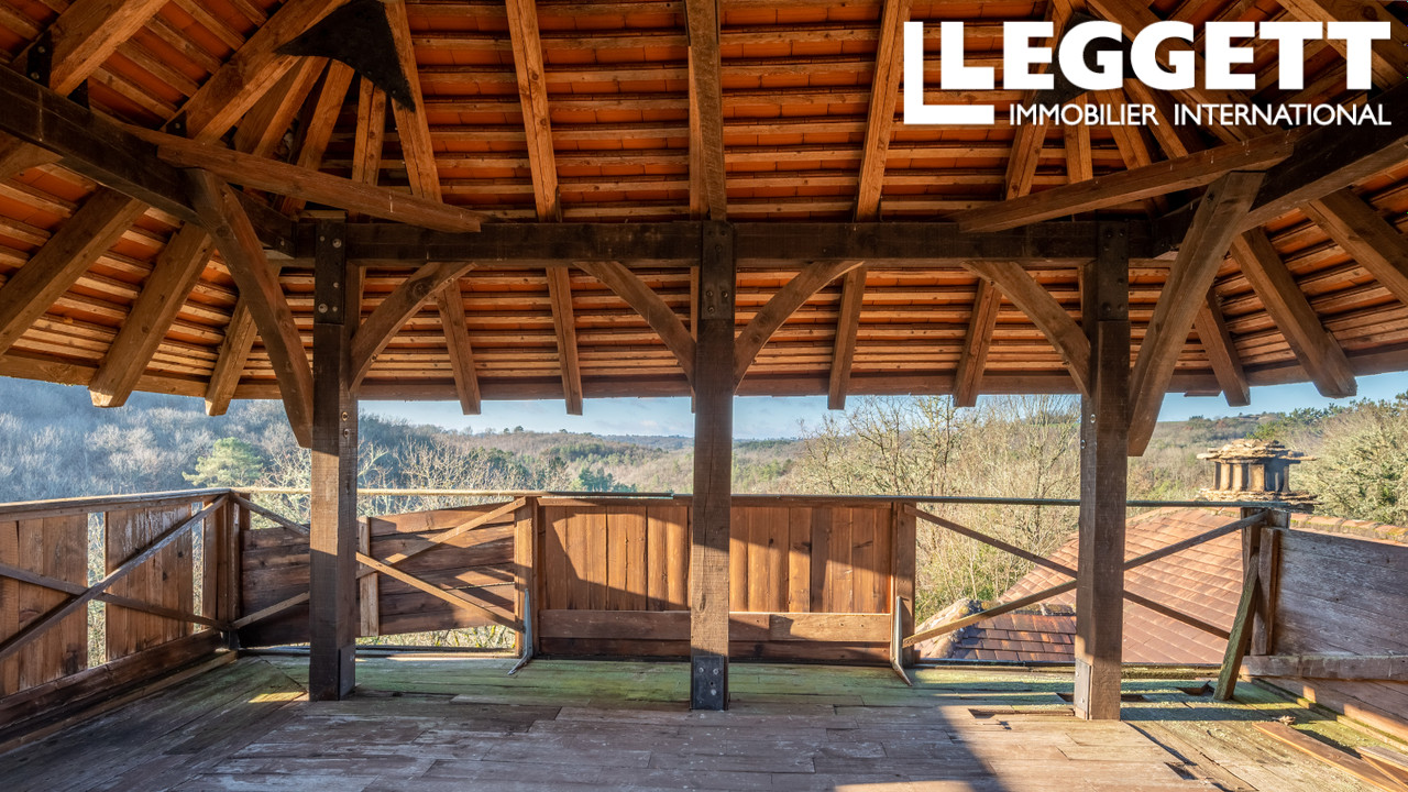 Tout est là : la pierre, le cantou, une tour (!), les poutres apparentes, les vues sur les forêts du Périgord Noir...