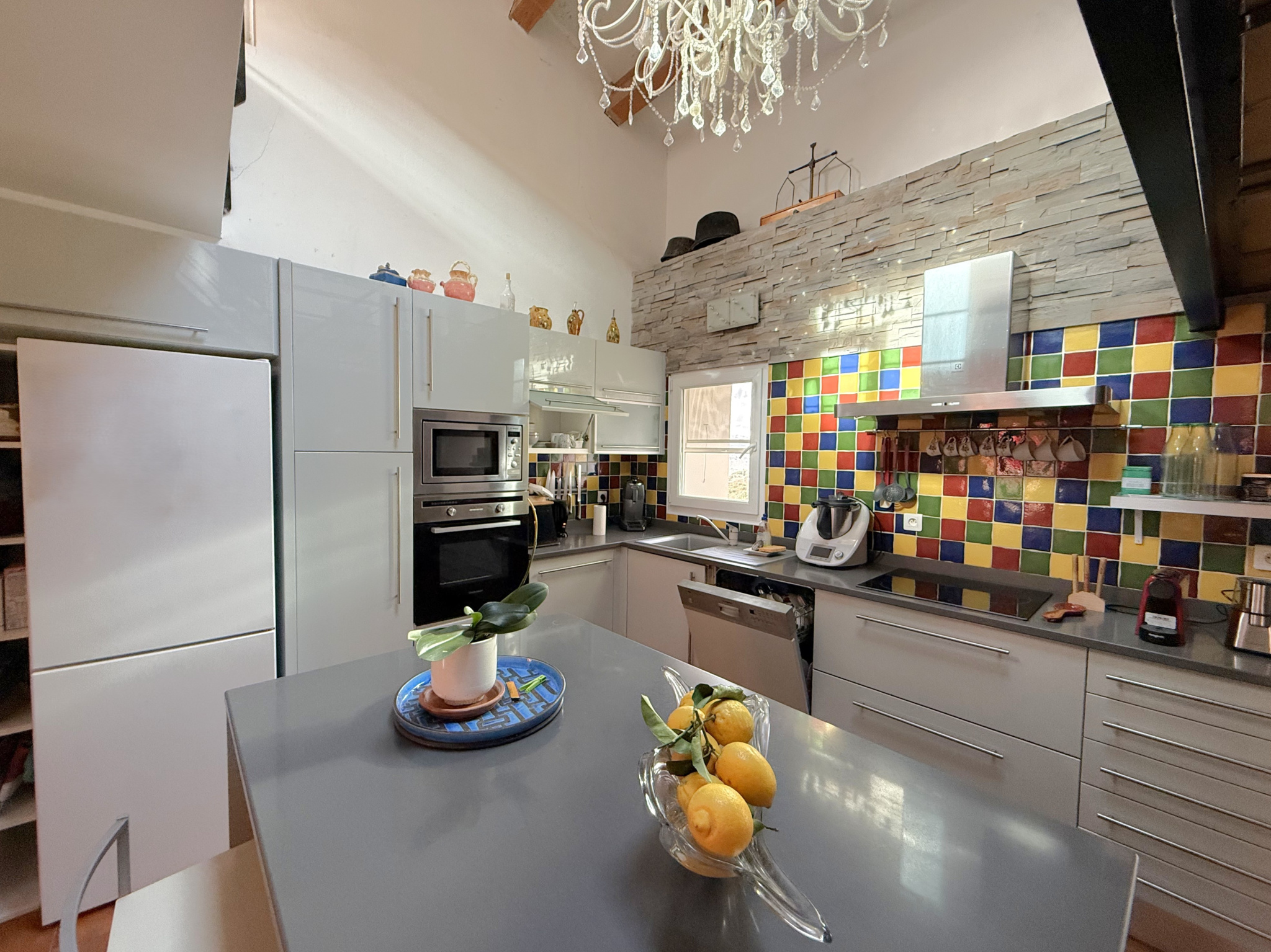 Implantée sur un terrain aménagé en restanques de 1 637 m2, la maison développe 296 m2 habitables sur deux niveaux et propose de beaux volumes lumineux. Elle se compose de 10 pièces entièrement équipées, dont un vaste espace de vie, ainsi qu'un loft indépendant de 80 m2 avec cuisine équipée.