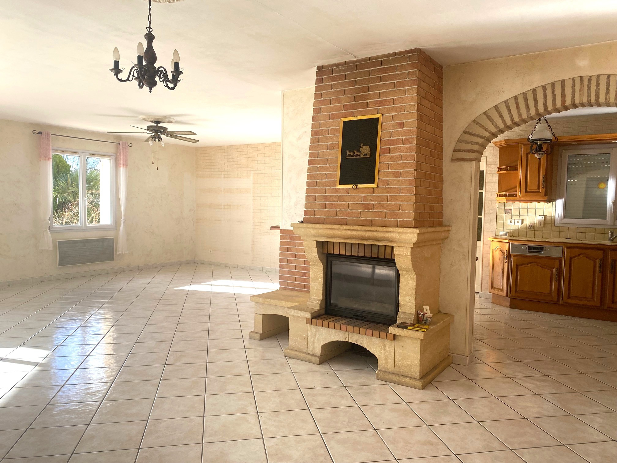 - Une maison principale composée d'un séjour et cheminée insert avec cuisine équipée ouverte, 3 chambres, salle de bain + douche, wc, cellier et double garage attenant.