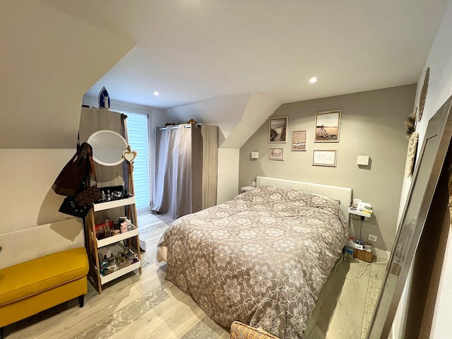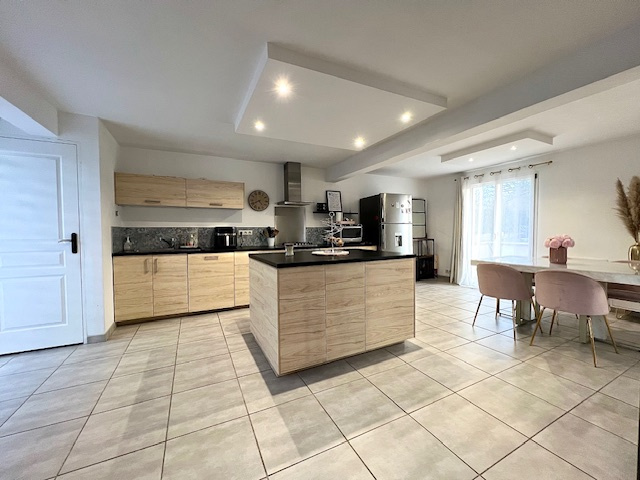 Au rez-de-chaussée, vous serez séduit par une grande entrée indépendante, une cuisine aménagée et équipée de 24,50 m2 avec îlot central, ouverte sur un salon / séjour de 35 m2, agrémenté d'un poêle à granulés, ainsi qu'un WC indépendant.
