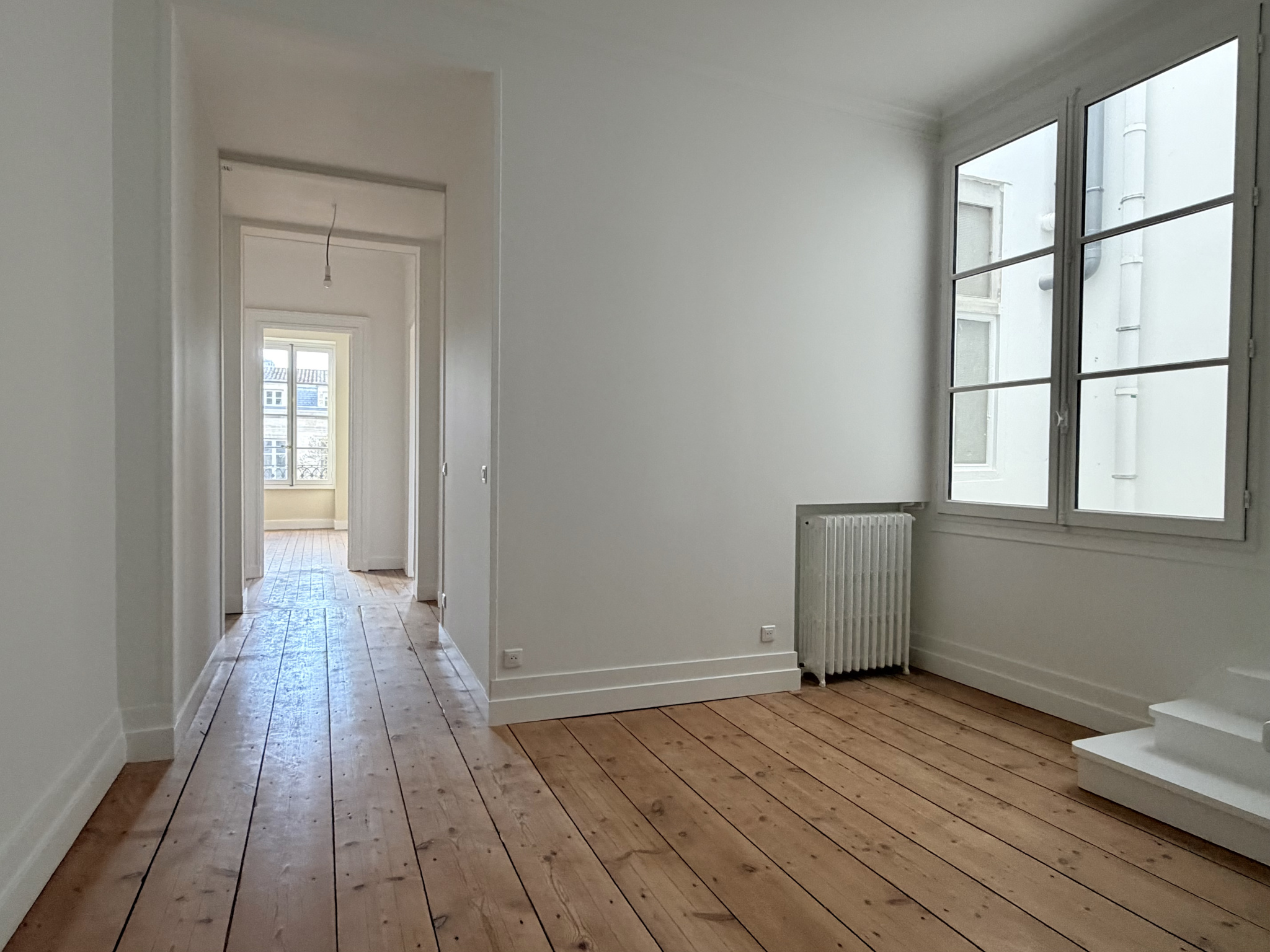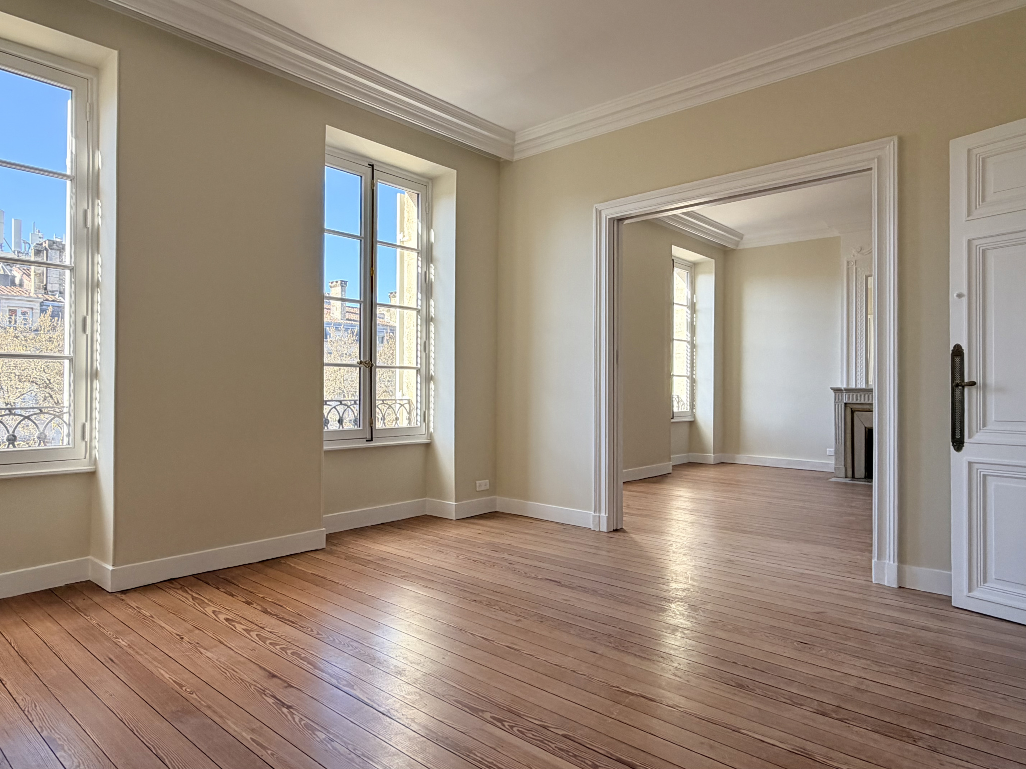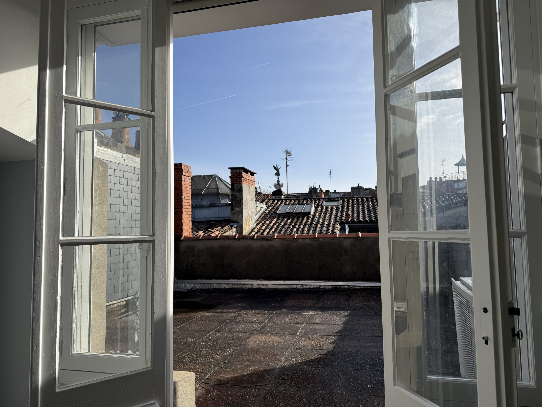 Entre la place Tourny et le Jardin Public, dans un très bel immeuble entièrement rénové avec ascenseur, superbe appartement traversant et sans vis-à-vis au troisième et dernier étage de 260 m2 au sol entièrement rénové tout en conservant ses prestations anciennes (parquet, moulure, cheminée). Au premier niveau, entrée avec vestiaire, vaste double réception, cuisine séparée, deux très grandes chambres sur l'arrière avec chacune son point d'eau et toilette indépendant. Au deuxième niveau, chambre (pouvant être séparée en deux chambres), bureau, salle d'eau, toilette indépendant et grenier mais surtout accès à une terrasse sensationnelle avec vue sur la colonne des Girondins et les toits de Bordeaux... Place de parking à proximité immédiate. Absolument exceptionnel !!