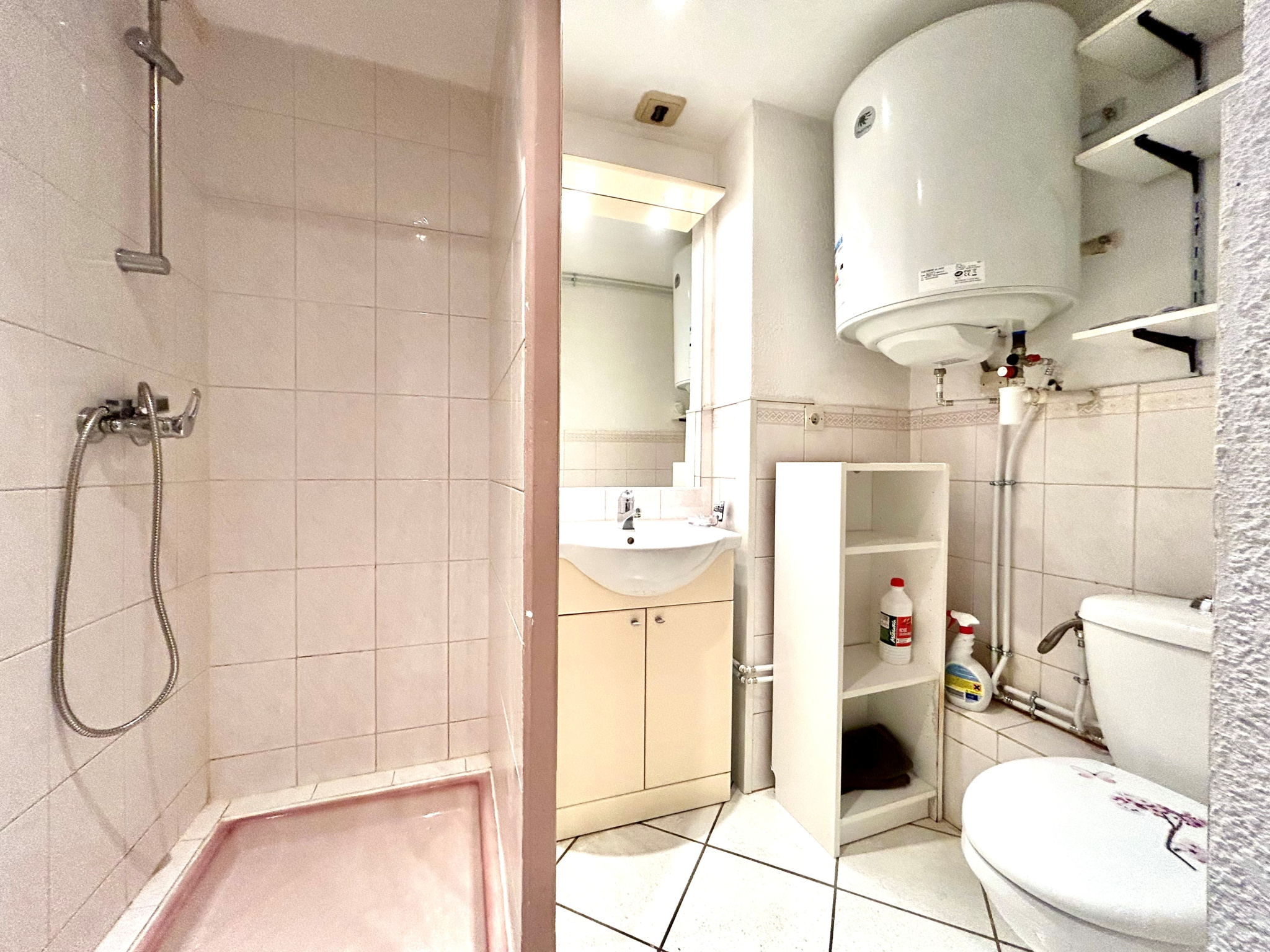 GRENOBLE - 92 Cours Berriat : Au premier étage d'un petit immeuble bien tenu, studio de 15.2m2 comprenant entrée avec rangement, pièce à vivre avec coin cuisine aménagé et équipé, salle d'eau/WC.
