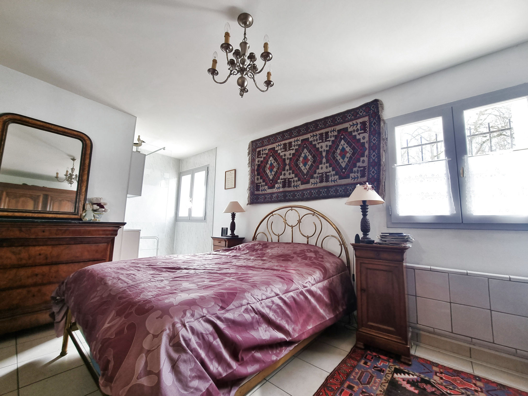 Au deuxième étage mansardé: palier, spacieuse suite parentale avec salle de bains, deuxième chambre, salle d'eau séparée avec WC, bureau, dressing. Garage et atelier. Cour et jardinet privatif d'environ 220 m2. Cette maison de charme est présentée en très bon état général. Double vitrage, isolation toiture et murs, charpente et toiture ardoises refaites années 2000, chaudière gaz de ville.