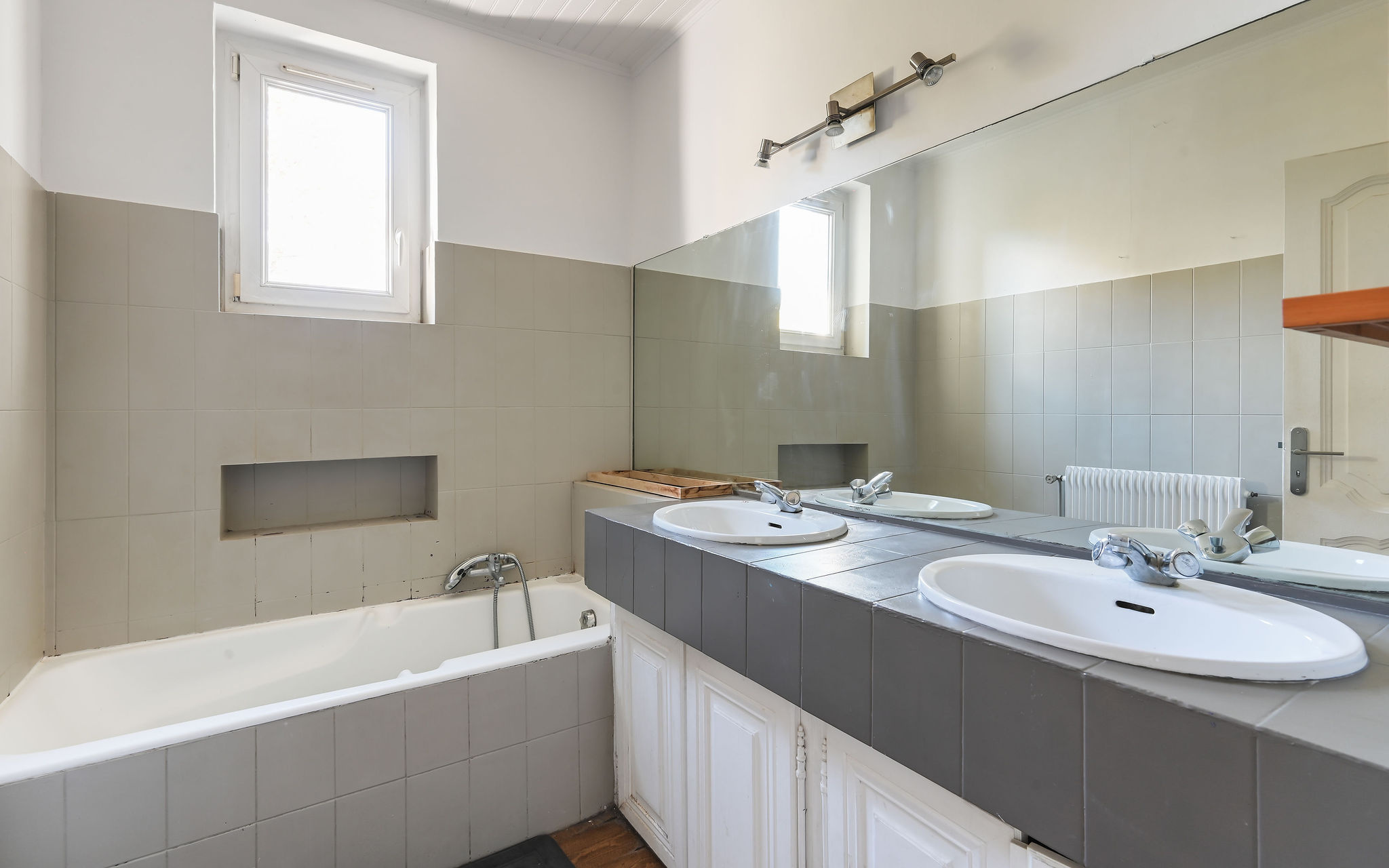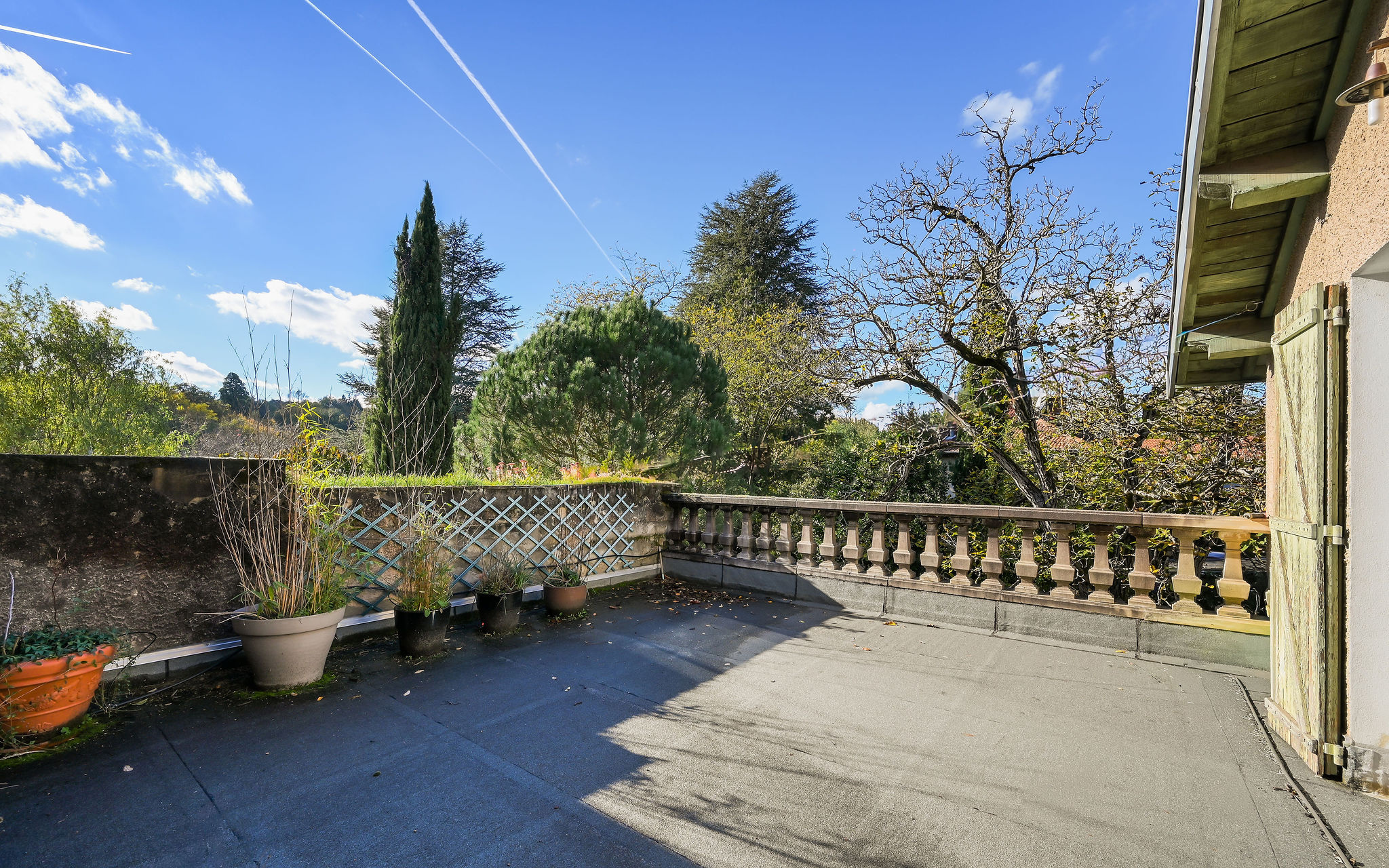 Implantée sur un terrain piscinable, plat et arboré de 930 m2, clos de mur avec un accès privatif sur les berges de l'Yzeron. Cette maison de 1910 de 210 m2 vous séduira par ses volumes. En l'état, la maison se divise facilement en deux parties distinctes et deux entrées. La première partie traversante Est/Ouest est répartie sur 3 niveaux. Au RDC, un séjour avec cheminée ouvert sur une vaste cuisine-salle à manger donnant sur une terrasse de 75 m2, un bureau ou chambre. A l'étage, deux chambres avec salle de bains. Au dernier niveau, une grande chambre sous les toits avec salle d'eau. La seconde partie est reliée à la première par un sas communiquant. Orientée plein Sud, elle est répartie sur deux niveaux. Au RDC, une charmante pièce à vivre au toit cathédrale avec cuisine USA ouverte sur terrasse et jardin. A l'étage, une spacieuse chambre avec salle d'eau donnant sur une belle terrasse de 30 m2 avec ses colonnes à l'ancienne. Double vitrage. Chaudière gaz. Portail automatique. Cave de 35 m2 et abri jardin. Cette maison atypique présente de nombreux aménagements possibles. Beau potentiel après rafraichissement. Idéale pour une grande famille ou un projet de division pour un investisseur.