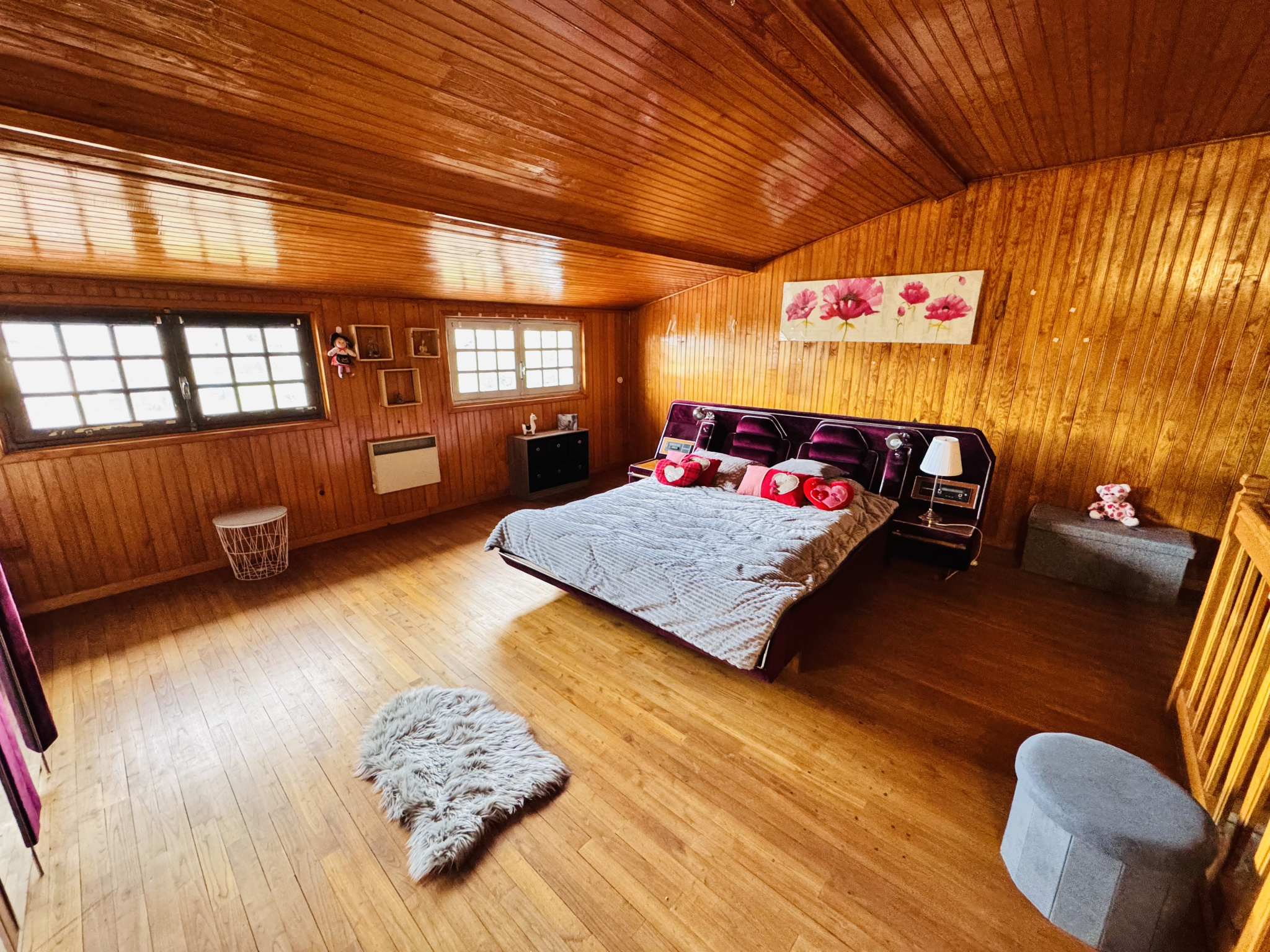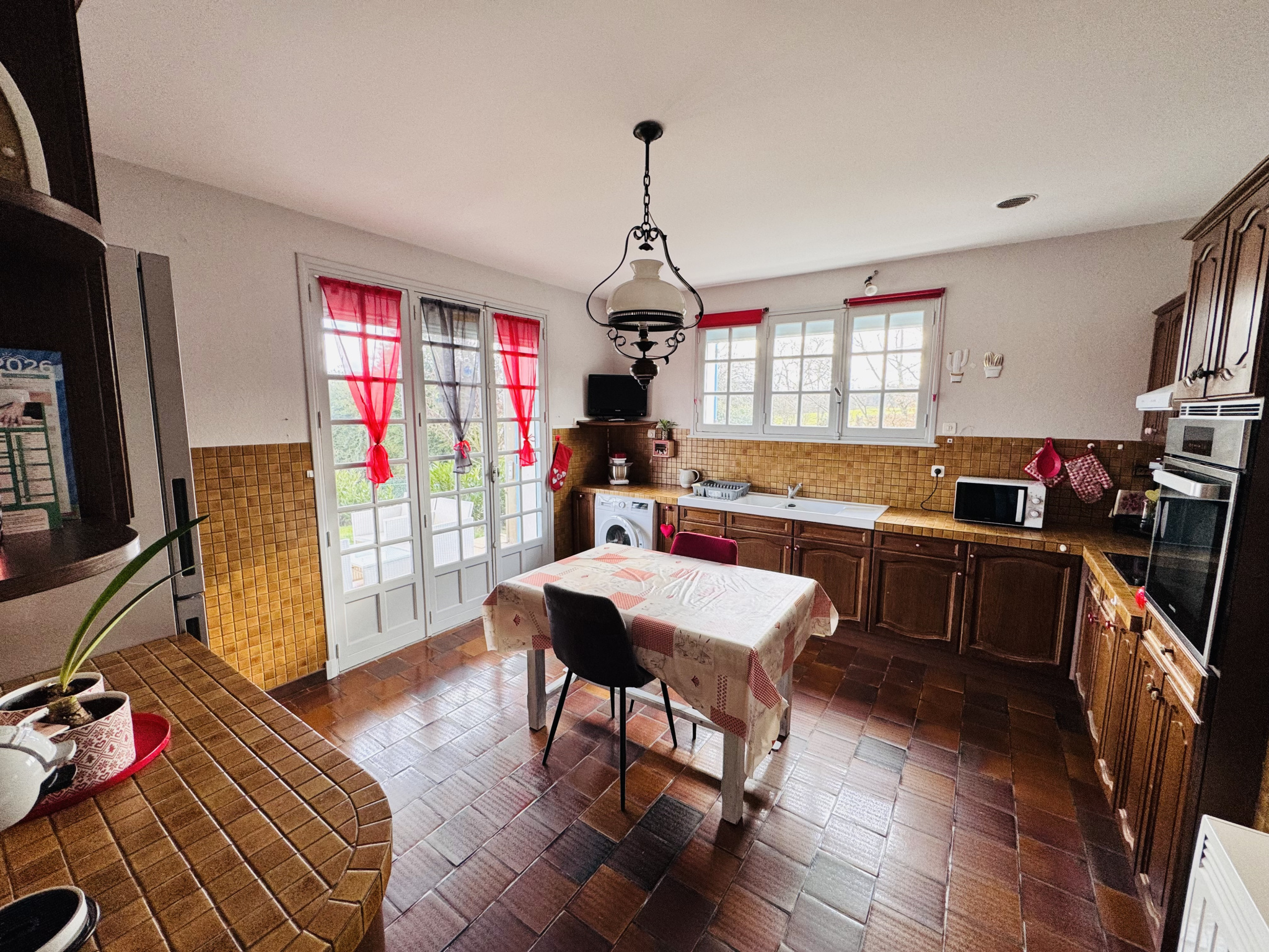Composition du bien : Rez-de-chaussée : Entrée avec dégagement, généreuse pièce de vie de 56 m2, cuisine séparée, 2 chambres, salle d'eau, wc. Les combles sont aménagées, elles comprennent une grande pièce palière servant actuellement de chambre, une pièce avec point d'eau et un grenier pouvant être transformé. L'ancien garage a quant à lui, été transformé en un espace 'cuisine d'été' avec accès direct à la cave.