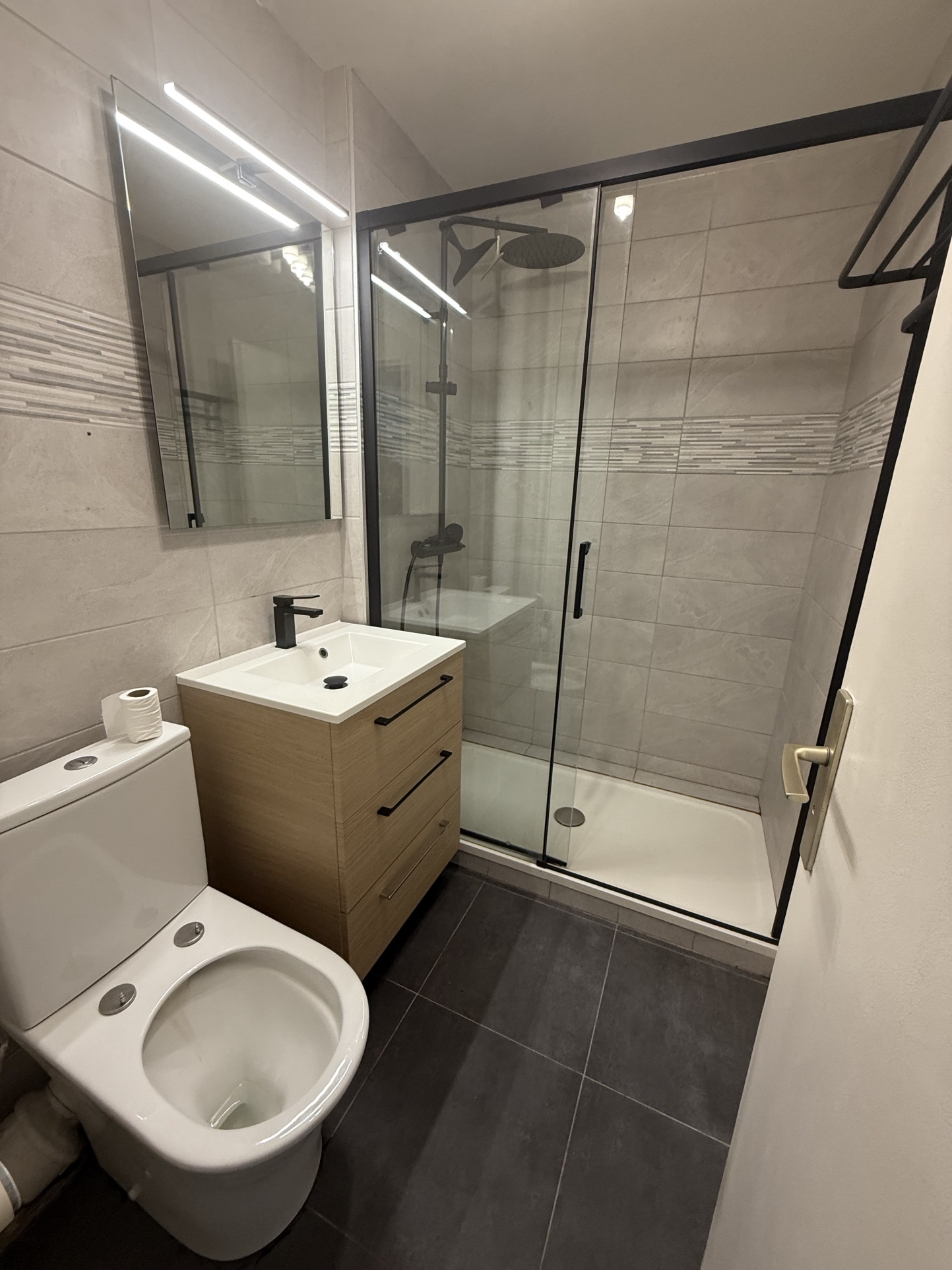 L'appartement se compose d'une pièce de vie lumineuse avec cuisine ouverte aménagée et équipée, entièrement neuve, d'une chambre séparée et d'une salle d'eau refaite à neuf également.